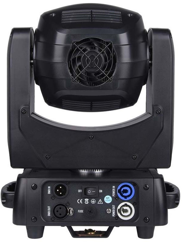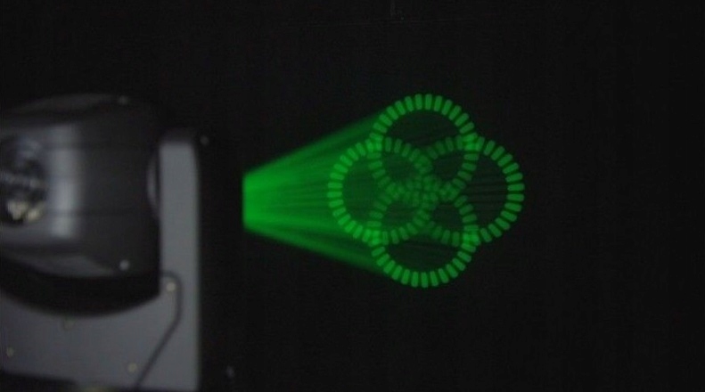 Головка оснащена колесом восьми цветов, вращающимся и индексируемым колесом гобо с семью современными узорами, формирующими световой луч, а также четырехлучевой вращающейся призмой, разделяющей луч. Резкость пятна регулируется электронной фокусировкой и ручным зумом.