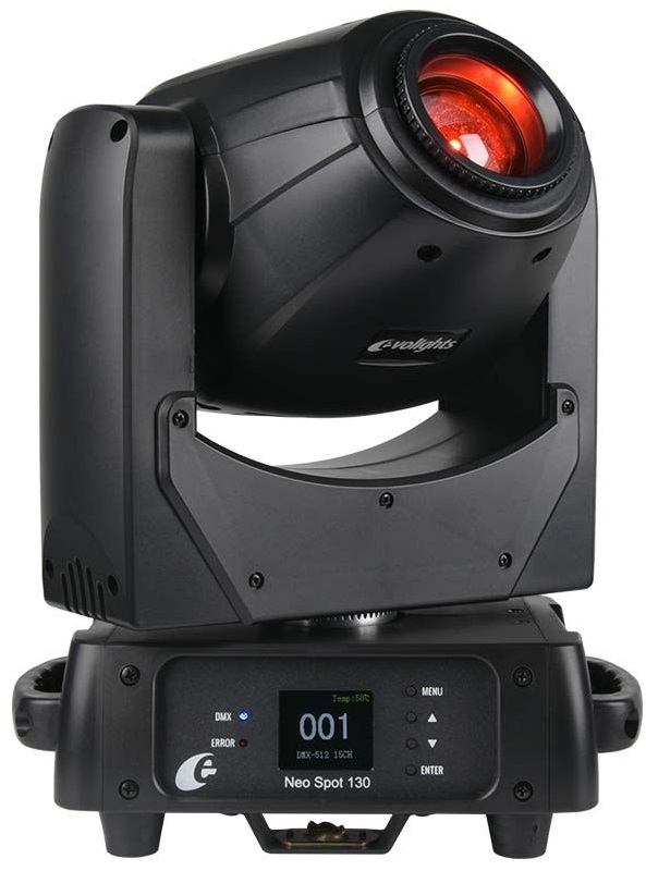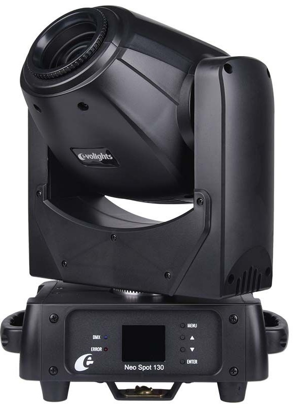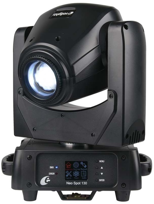 EVOLIGHTS NEO SPOT 130W — профессиональная светодиодная сценическая подвижная головка, источником света которой является белый диод мощностью 130 Вт и цветовой температурой 9000 Кельвинов.