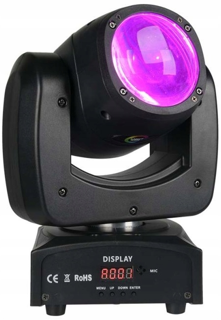 Отражатель работает в цветовой палитре RGBW, излучая привлекательный тонкий луч с углом всего 2 градуса. . Точные шаговые двигатели и небольшой вес светодиодной головки позволяют светильнику перемещаться очень быстро, создавая динамичное шоу.