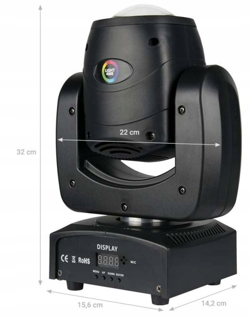 - это компактная и простая в использовании светодиодная мини-подвижная головка, которая , благодаря своим небольшим размерам и весу он еще и очень мобильный.