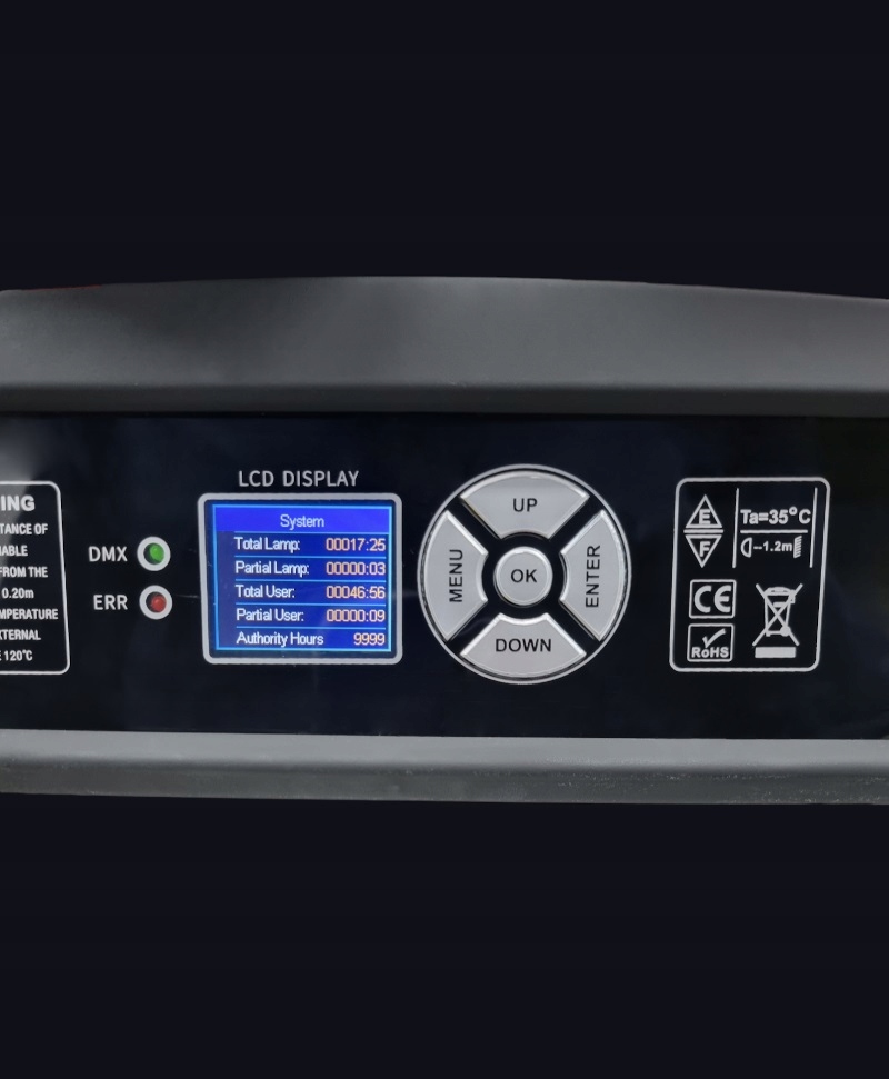 - Управление режимами. : DMX512 / ведущий-ведомый/ автоматический