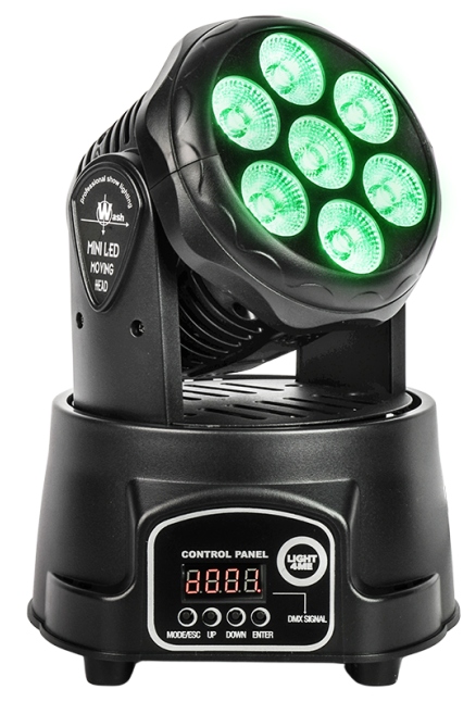 - DMX когда для управления одной мини-светодиодной головкой b> используются группа отражателей внешние контроллеры освещения DMX.