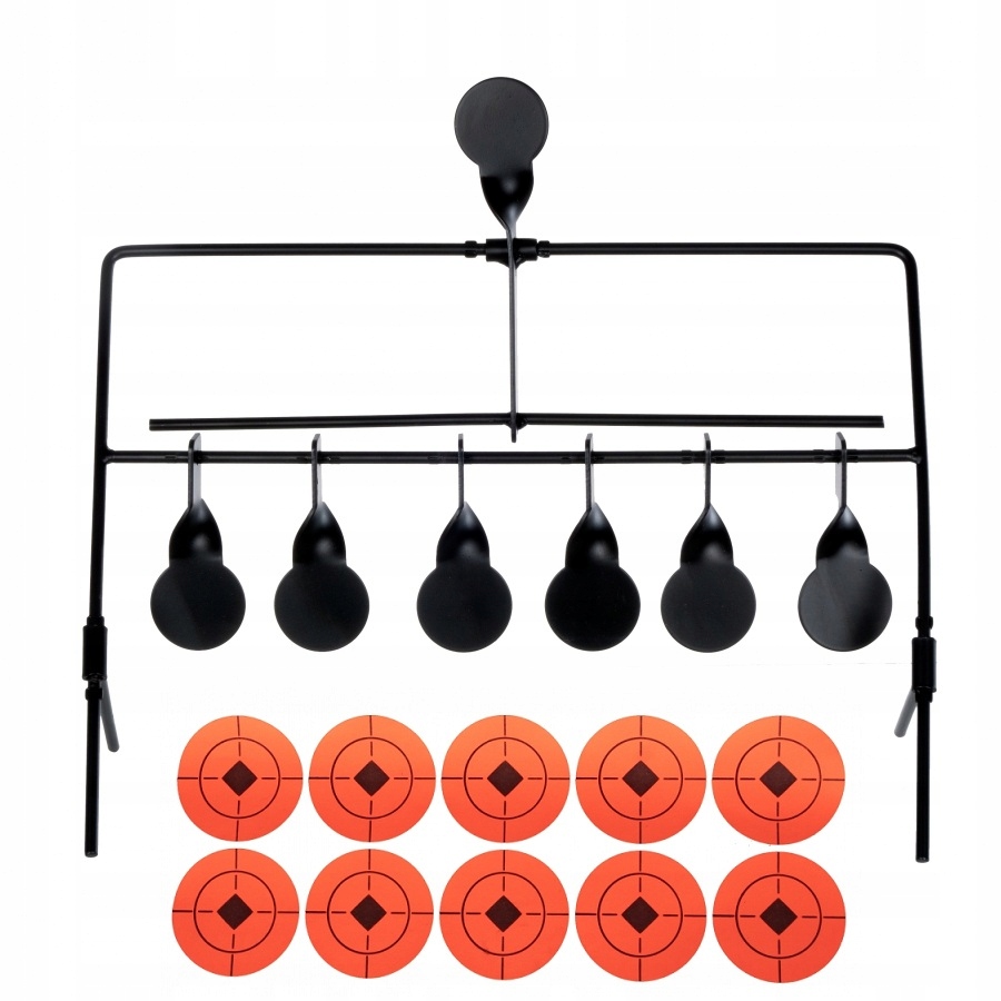 В пулеловушке используются 6 качающихся мишеней в виде дисков, которые после точного попадания вращаются на монтажной балке. Движение спиннеров видно даже с большого расстояния, поэтому проверка попадания всегда понятна и проста. Спиннер оснащен простым механизмом сброса, поэтому после удара по дополнительному верхнему диску мы можем удаленно «ставить цели». Этот функционал означает, что после 6 точных попаданий нам не придется идти к спиннеру, чтобы снова подготовить его к стрельбе. В комплект входит пакет липких мишеней, улучшающих видимость мишеней в условиях плохой освещенности.