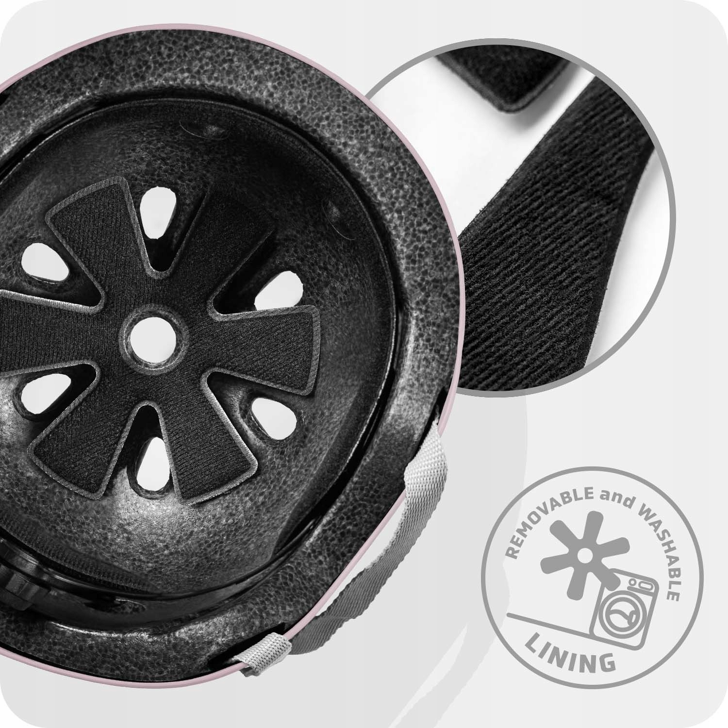 шлем оснащен внутренним, съемными губками, которые имеют двойную функцию. Они допускают точную подгонку шлема к форме головы пользователя, обеспечивая стабильность во время вождения и гарантируя комфорт ношения благодаря мягкой и дружественной структуре. Более того, губки могут быть легко удалены и промыты , что позволяет сохранить гигиену и свежесть шлема даже после интенсивного использования