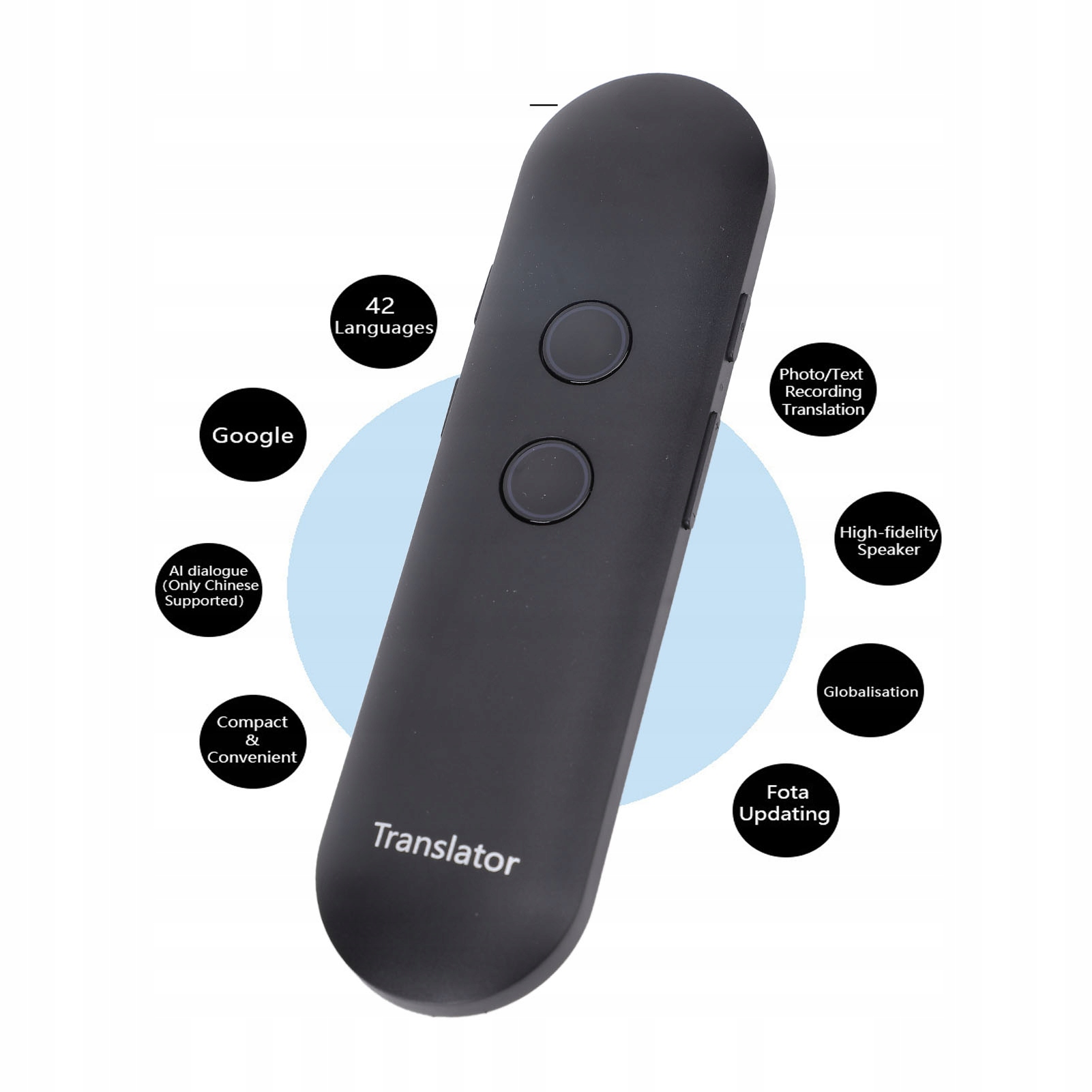 5. Портативный дизайн: устройство языкового переводчика компактно и легко носить с собой, подходит для путешествий, учебы, деловых встреч и т. д. Карманный переводчик имеет прочную конструкцию с корпусом из АБС-пластика и имеет длительный срок службы.