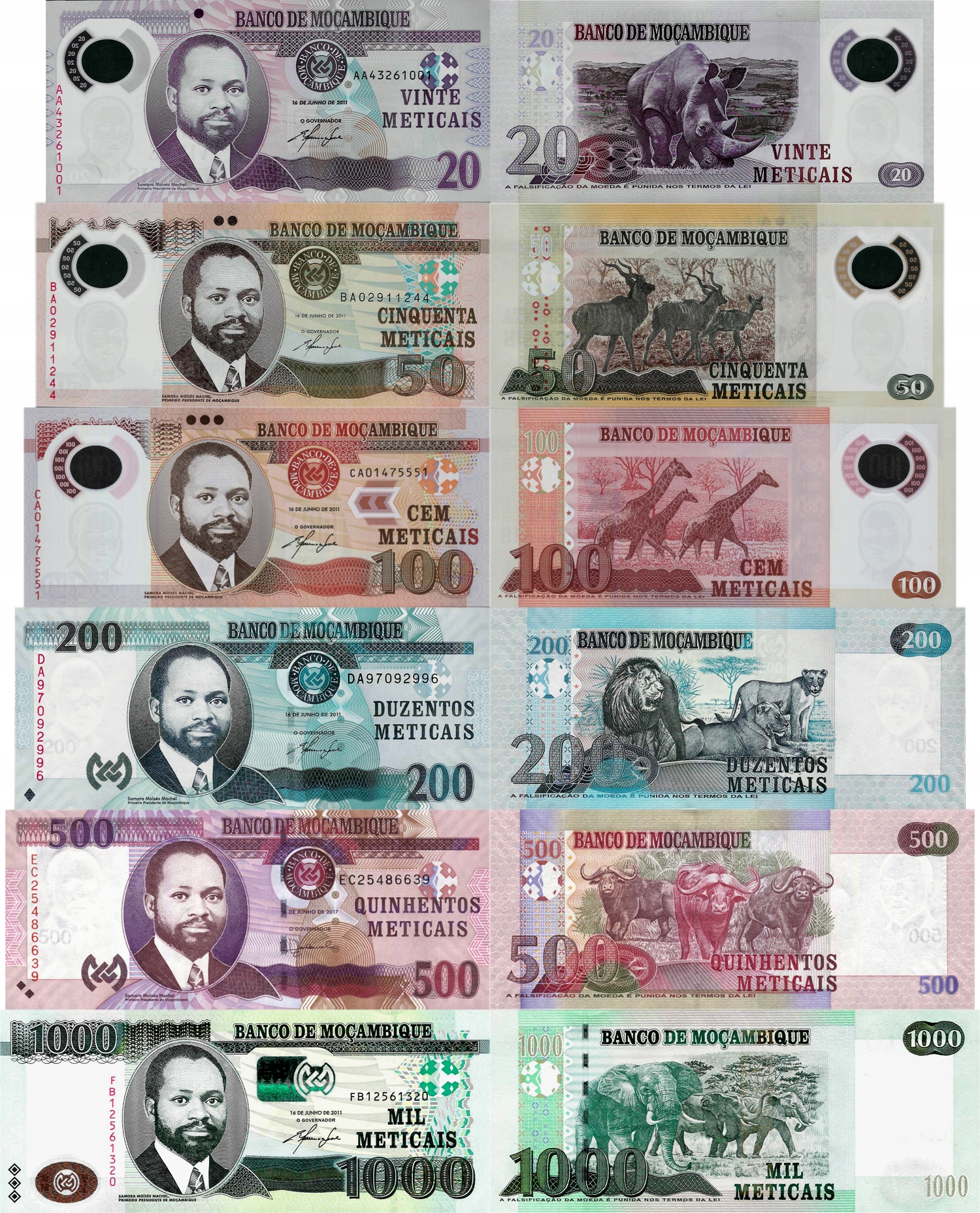 Mozambique 2011-17 Set 6 PCS 20+50+100+200+500+1000 Meticais Pick 149-154 UNC