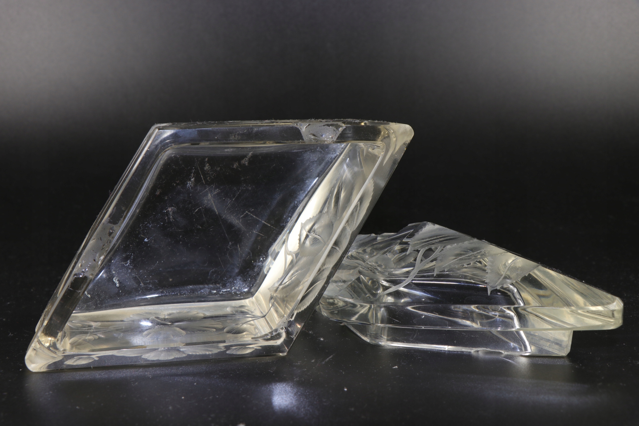 Да Как видно на фотографиях, стекло повреждено. На верхней кромке три слегка отшлифованных дефекта, на крышке по краям три небольших дефекта. Несмотря на недостатки, вещь красивая.
