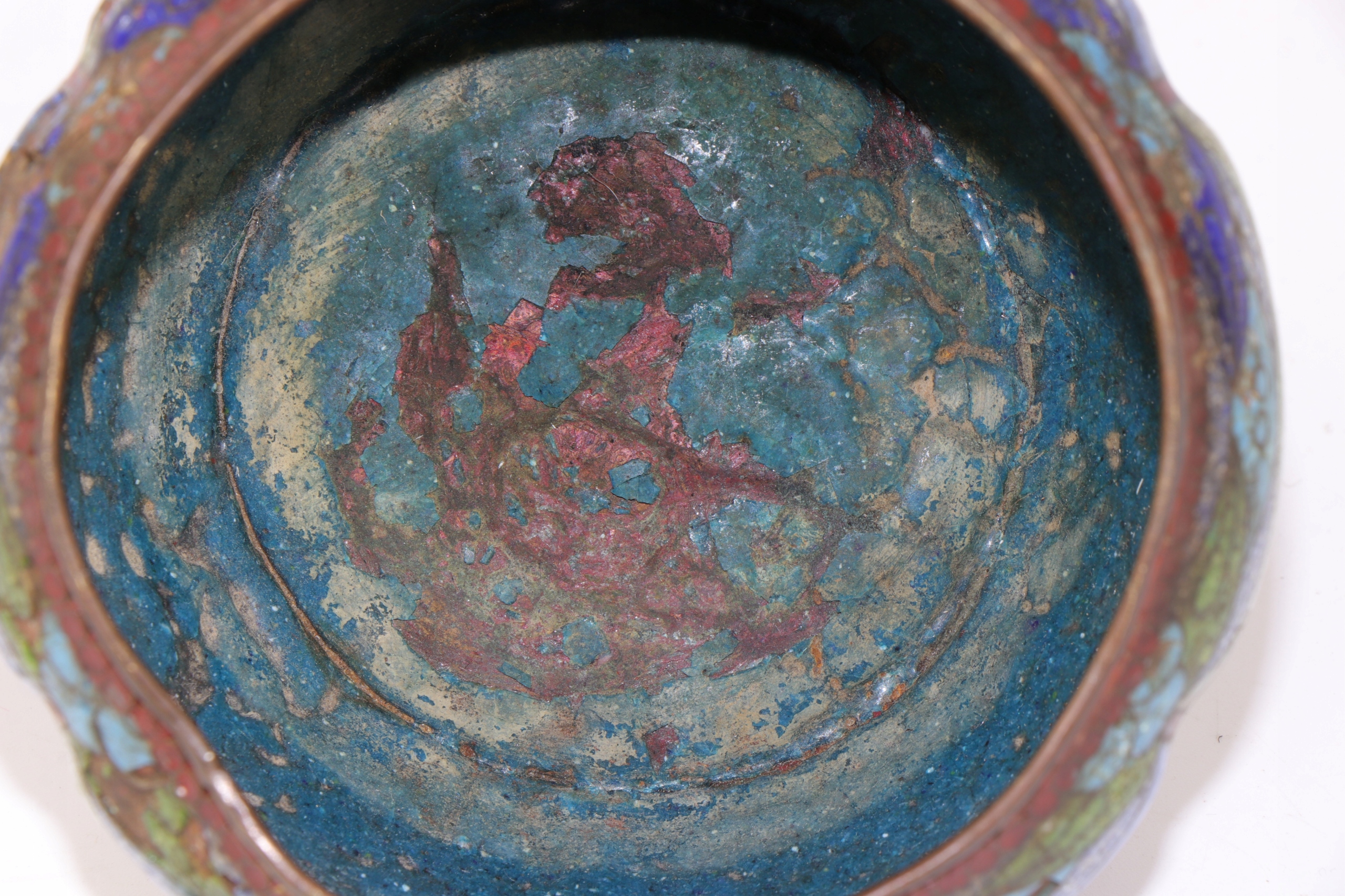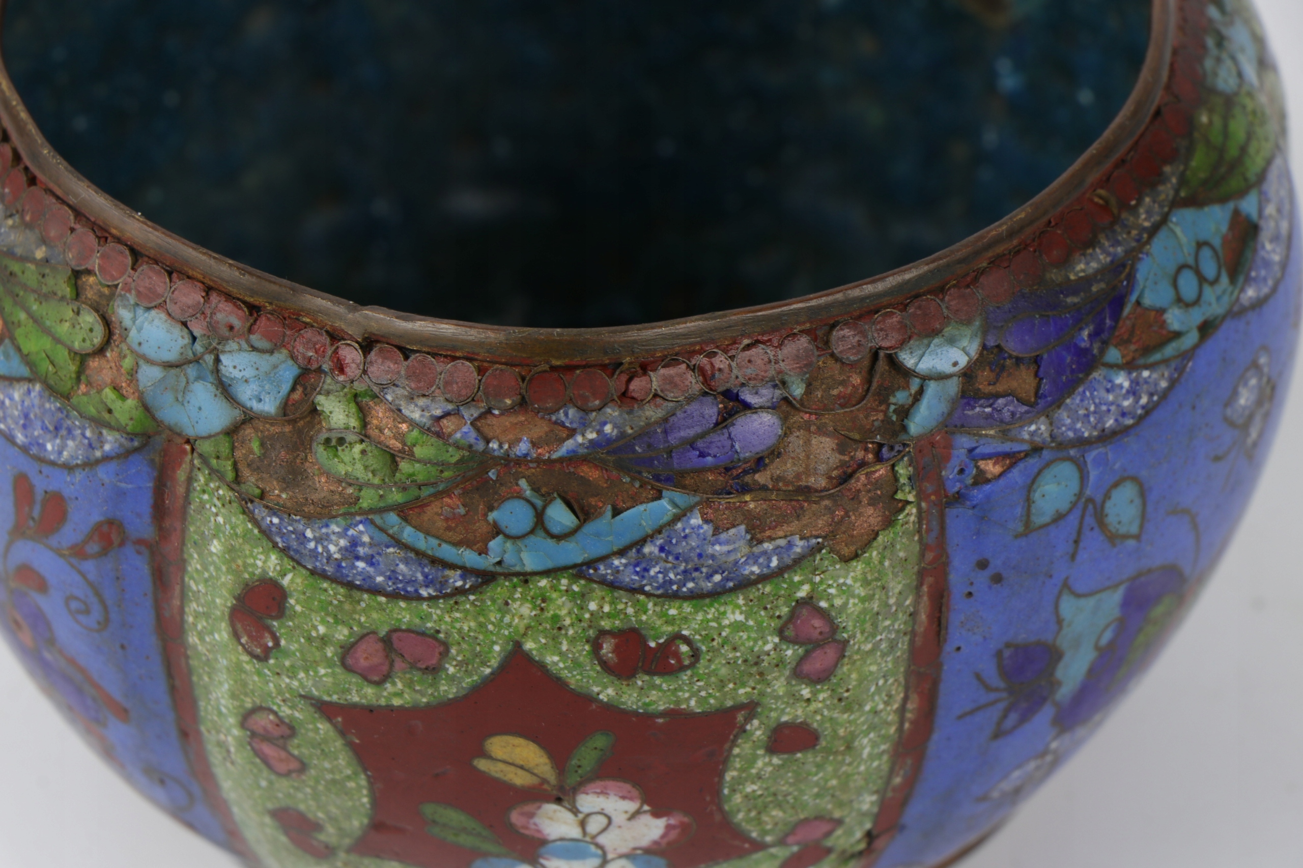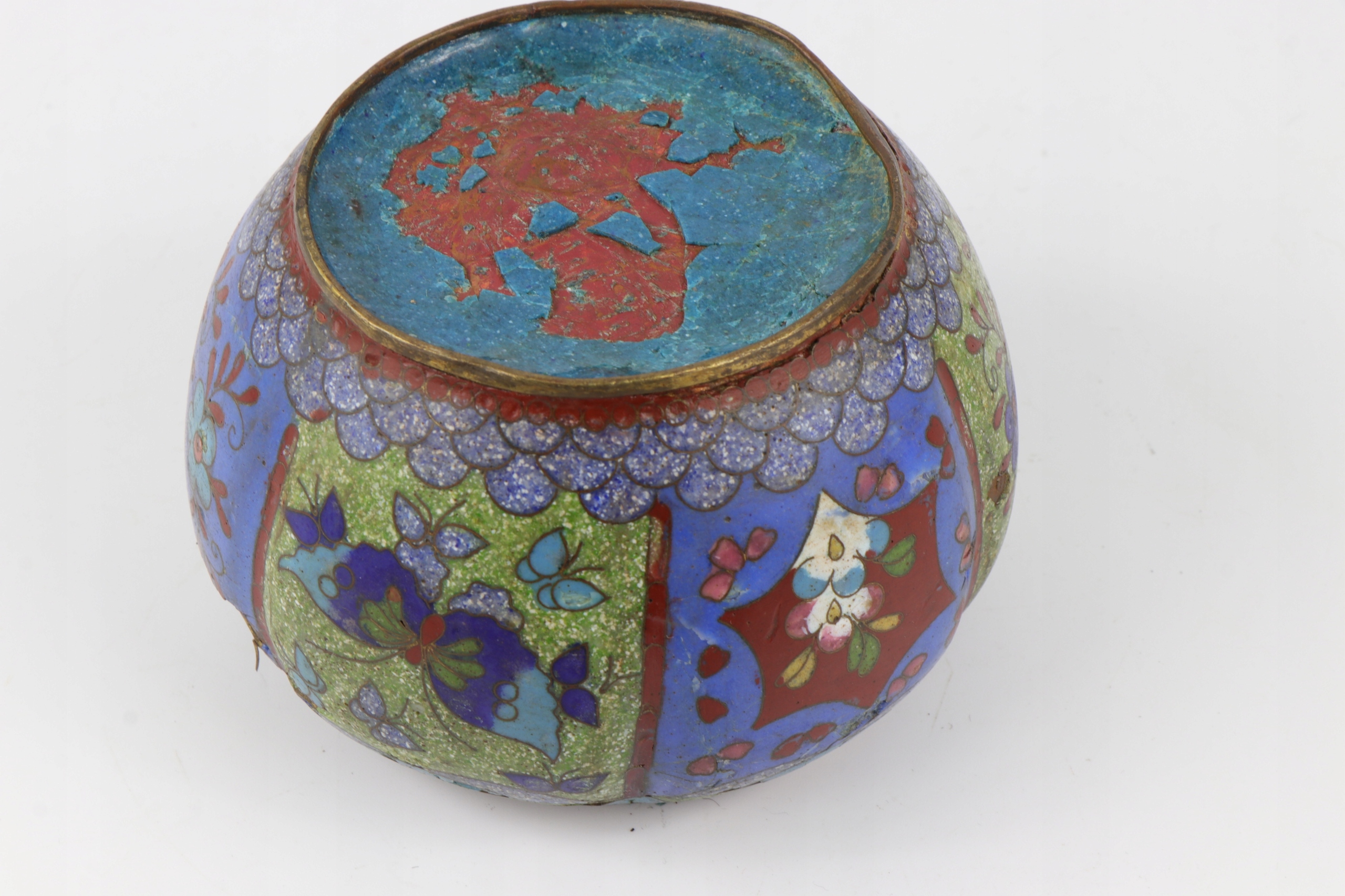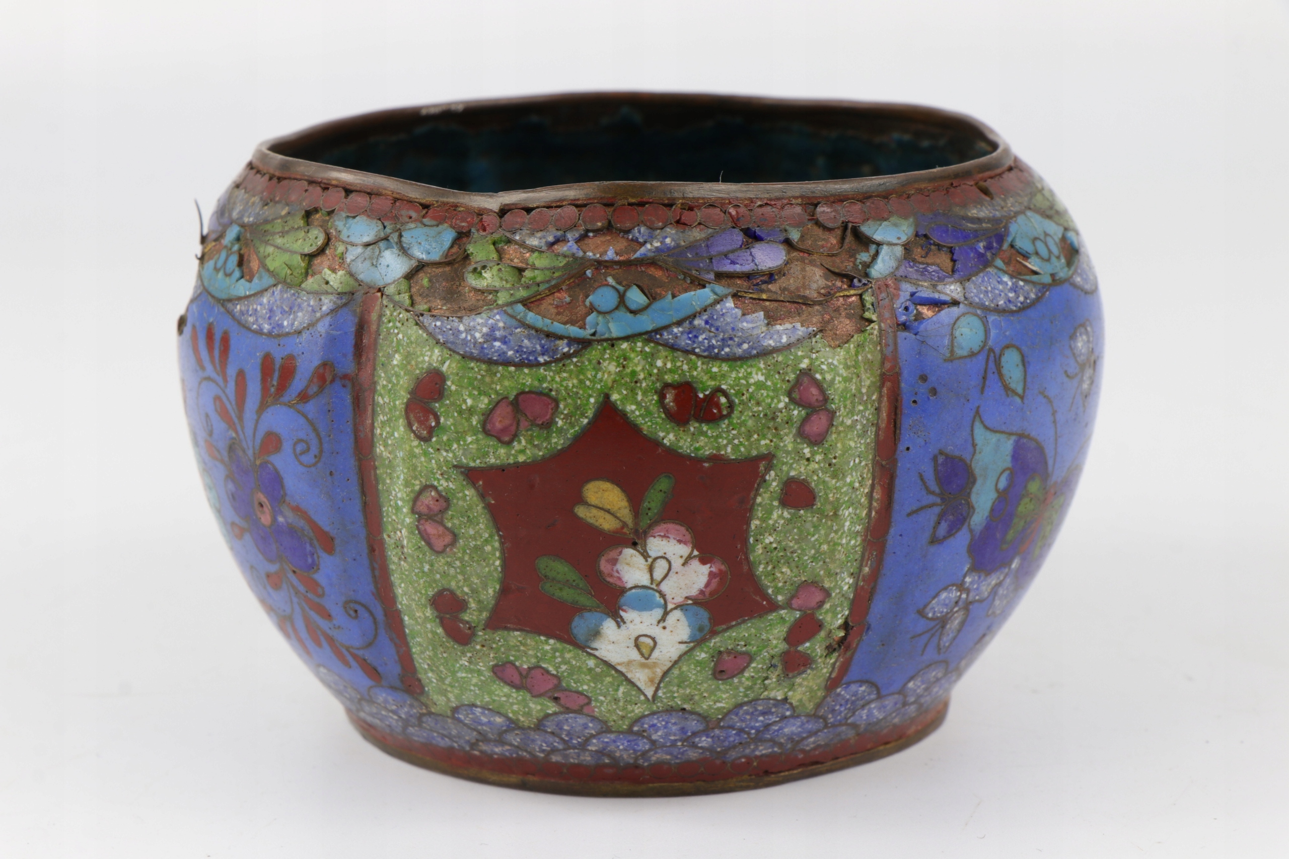 Ячеистая эмаль, чаша, украшенная китайским растительным орнаментом. Предмет второй половины XIX века, поздняя династия Цин, 1850-1900 гг. Чаша для ухода и ремонта эмали.