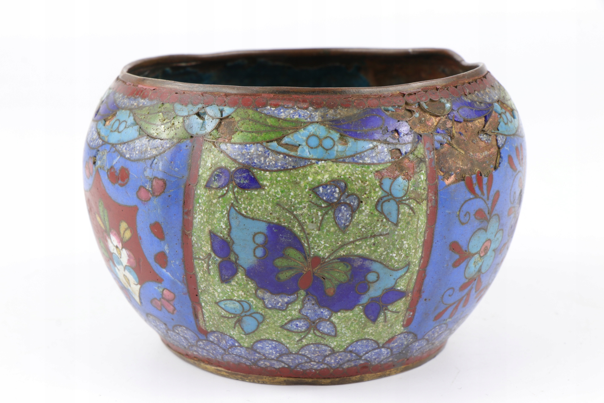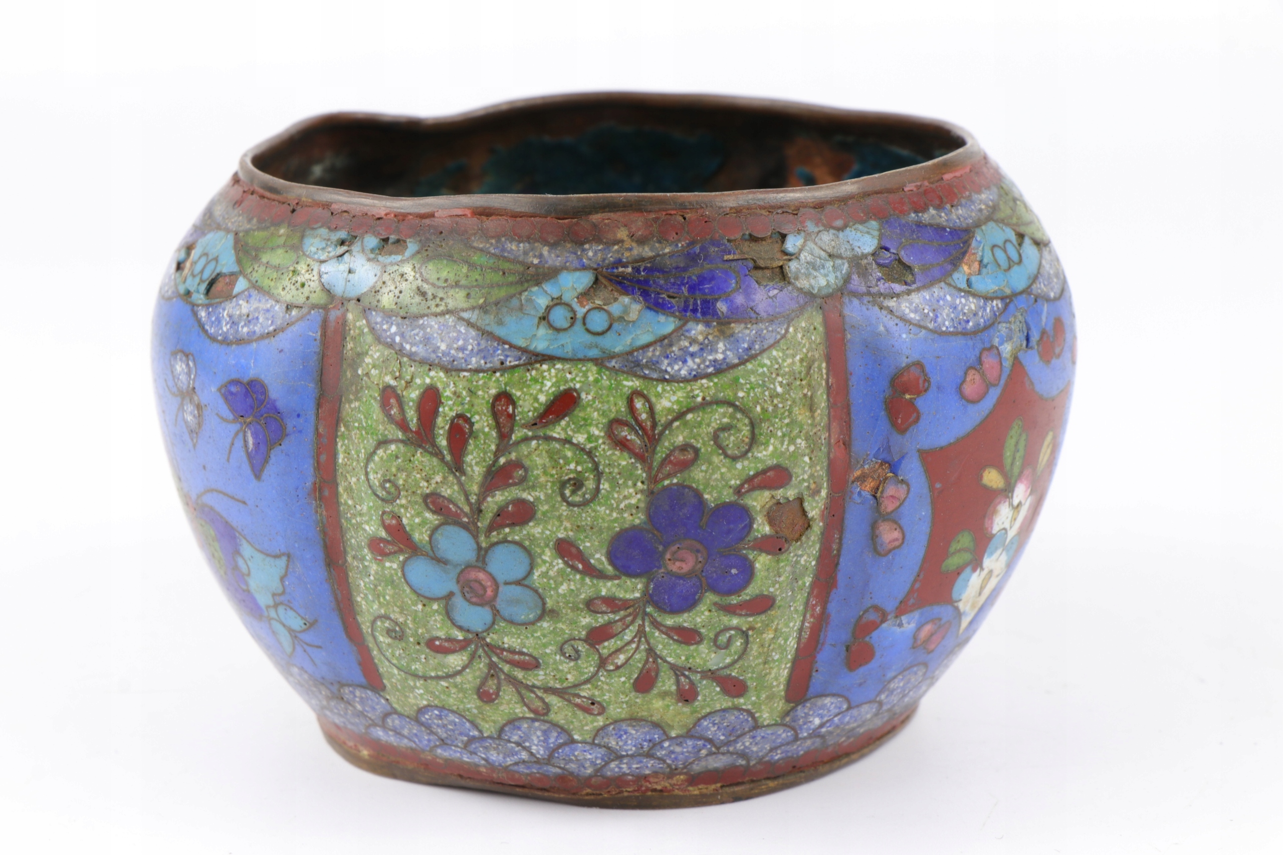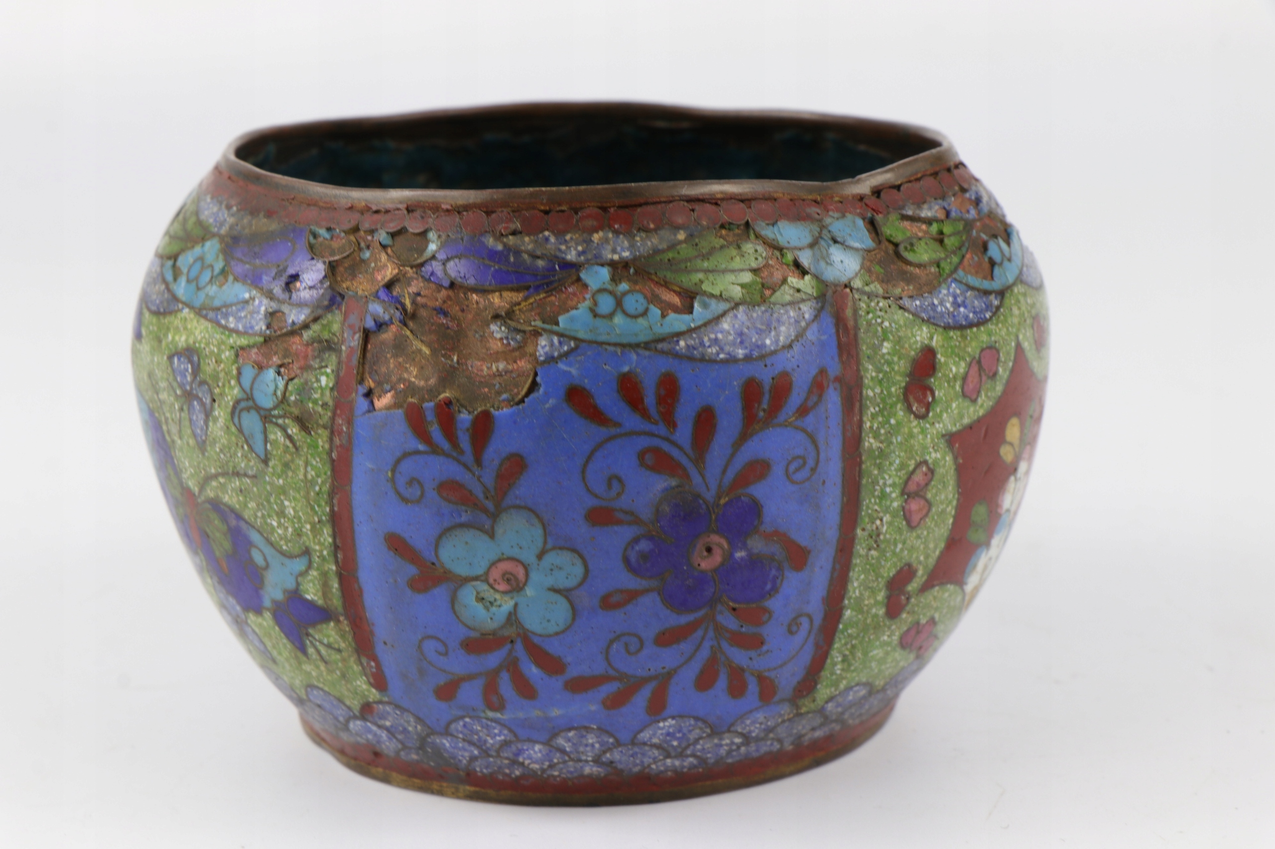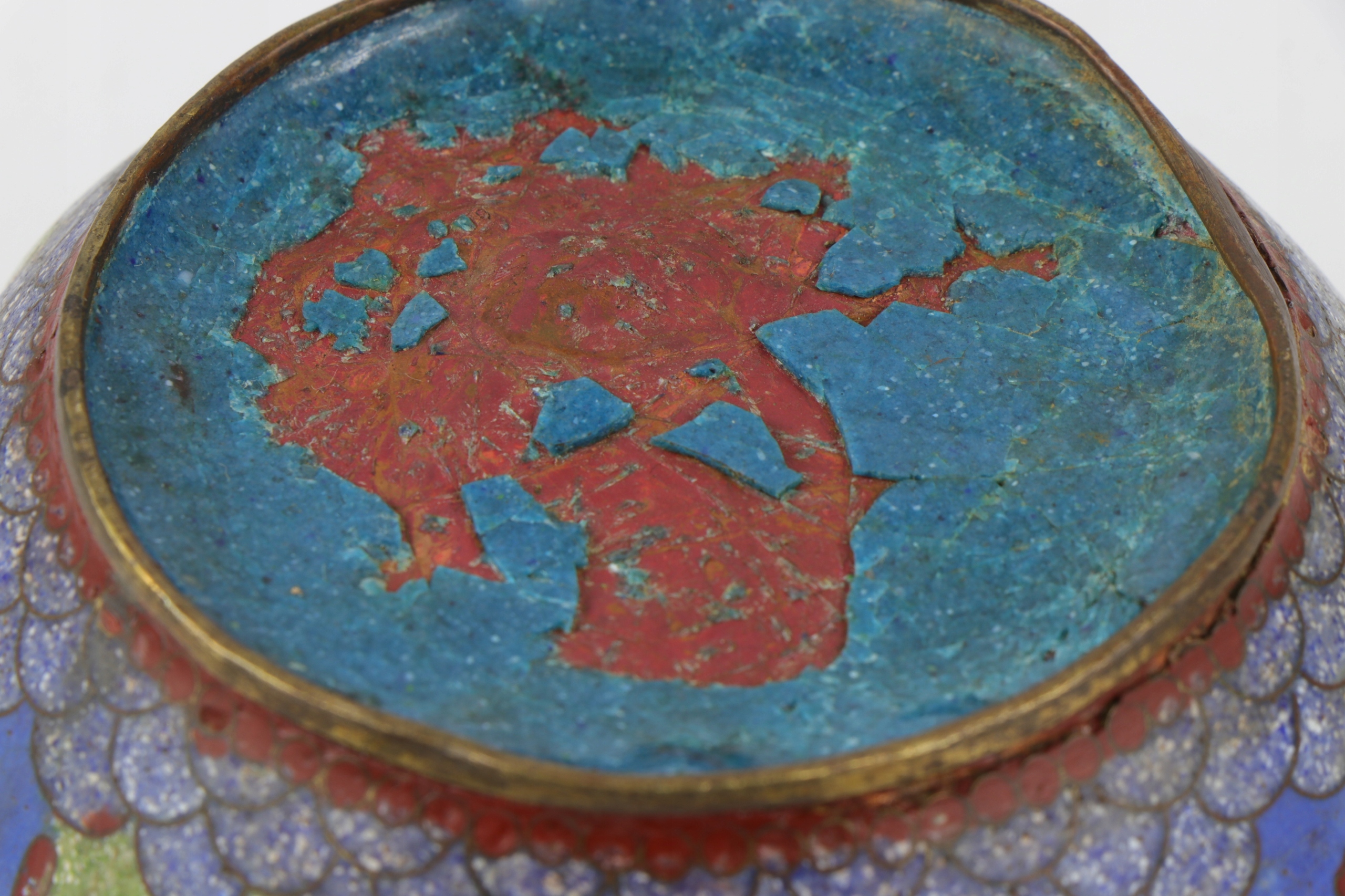 Ячеистая эмаль, чаша, украшенная китайским растительным орнаментом. Предмет второй половины XIX века, поздняя династия Цин, 1850-1900 гг. Чаша для ухода и ремонта эмали.