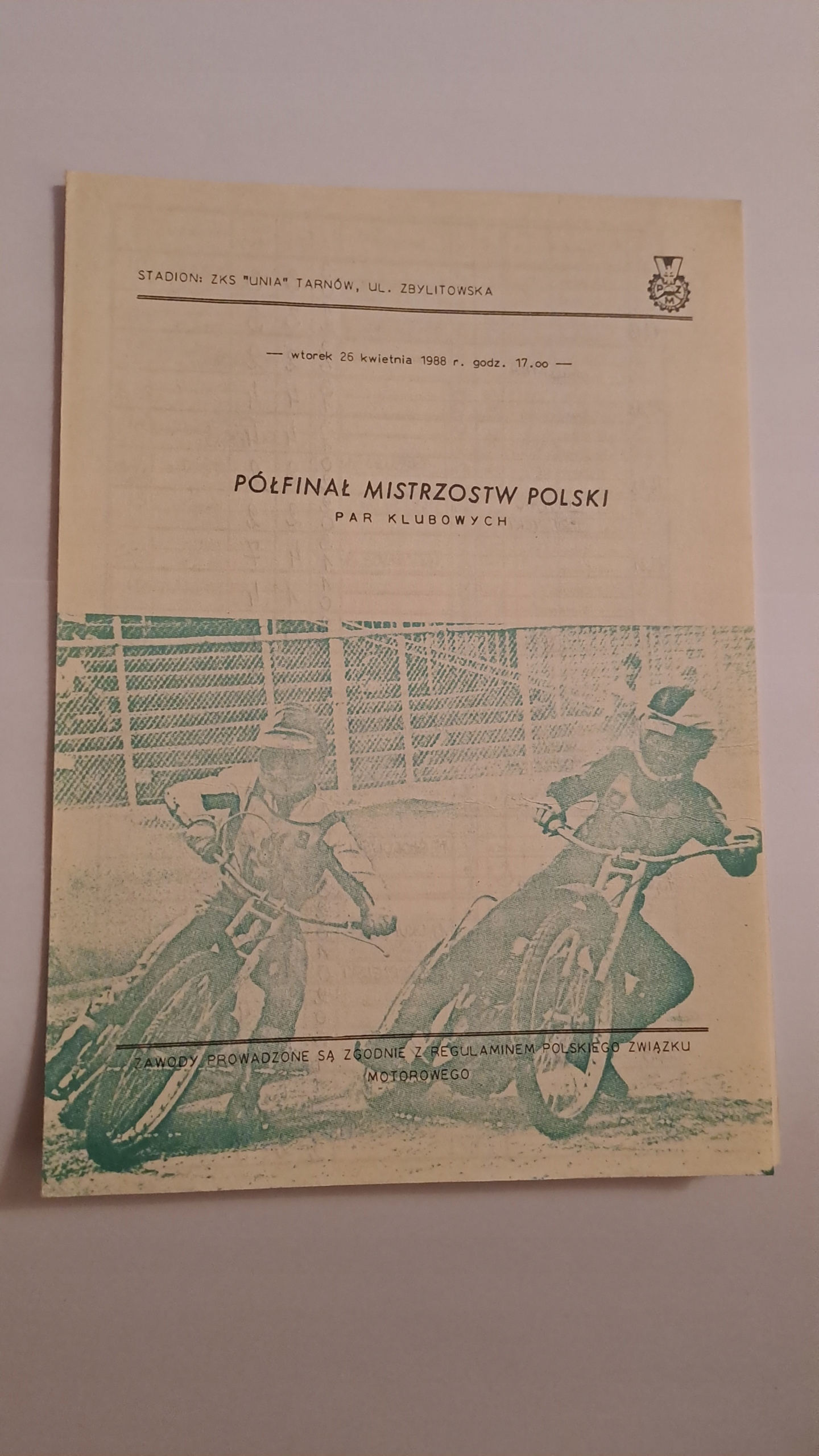 Пары клуба MP Unia Tarnów 26-04-1988 Speedway Программа заполнена