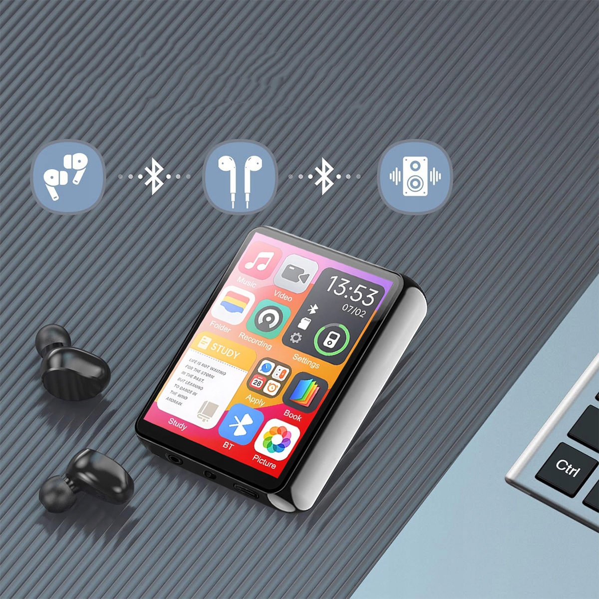 MP3-плеер 128 ГБ, Bluetooth 5.3, сенсорный экран 2,4 дюйма, звук Hi-Fi, встроенный динамик, запись, возможность расширения до 512 ГБ, подходит для детей (черный)