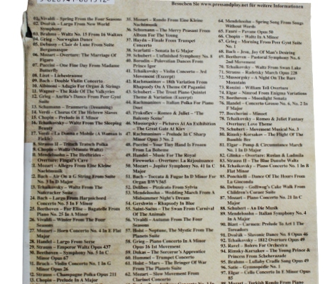 - Загружено 100 произведений классической музыки: Брамс, Вивальди, Григ, Моцарт, Бетховен, Пуччи, Дворжак, Шуман, Лист, Верди, Штраус, Шопен и многие другие.
