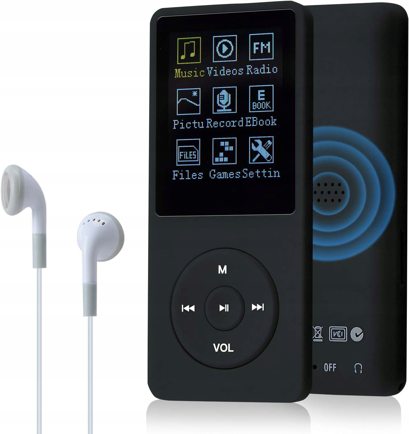 🎶🎶 Качество звука без потерь: Поддержка звука без потерь качества в форматах MP3/AMV. форматы. (Примечание: другие форматы требуют преобразования перед использованием). Другие функции: FM-радио, папка, Bluetooth, запись, настройка, видео, календарь, шагомер, электронная книга, изображение, заставка времени, повтор A-B, воспроизведение с регулируемой скоростью.