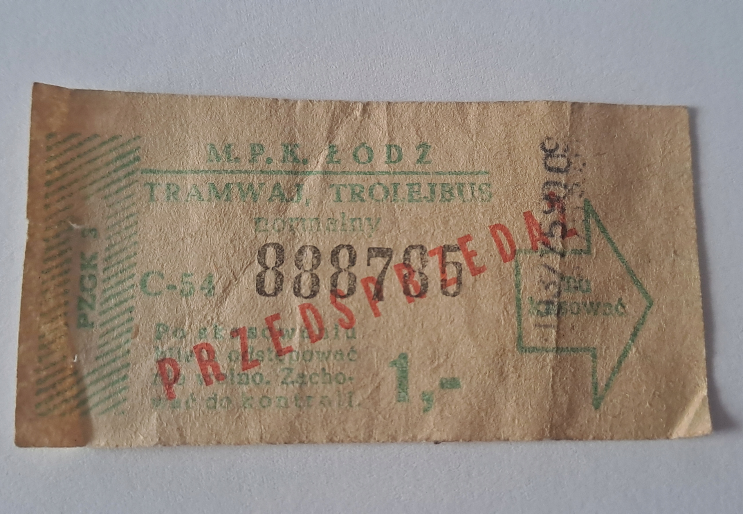 БИЛЕТ на МПК Лодзь 1 злотый (C-54) PRL