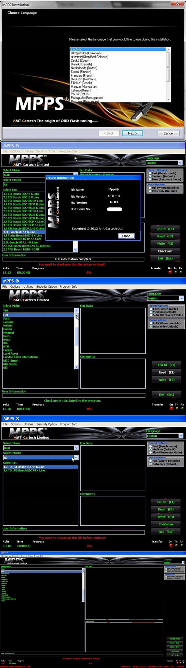 - Интерфейс поддерживает еще больше новых драйверов двигателей (ECU), включая: EDC16, EDC17, ME9.x и Siemens ppd1/x, EDC15, ME7.x и другие ...