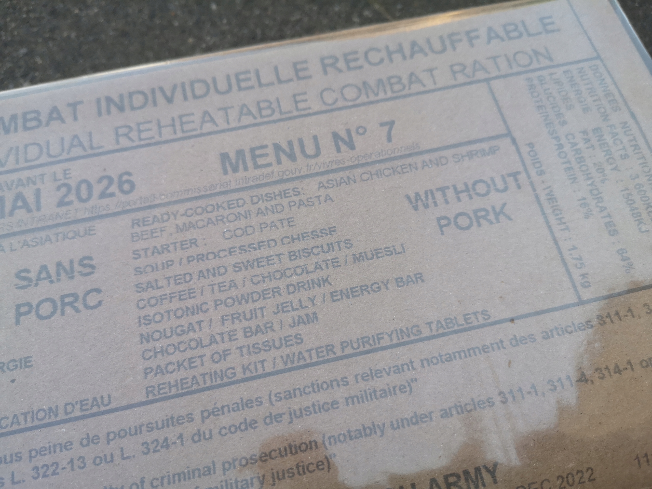 MRE RACJA ŻYWNOŚCIOWA WOJSKOWA FRANCUSKA NR 7 SRG MEAL READY TO EAT 2026
