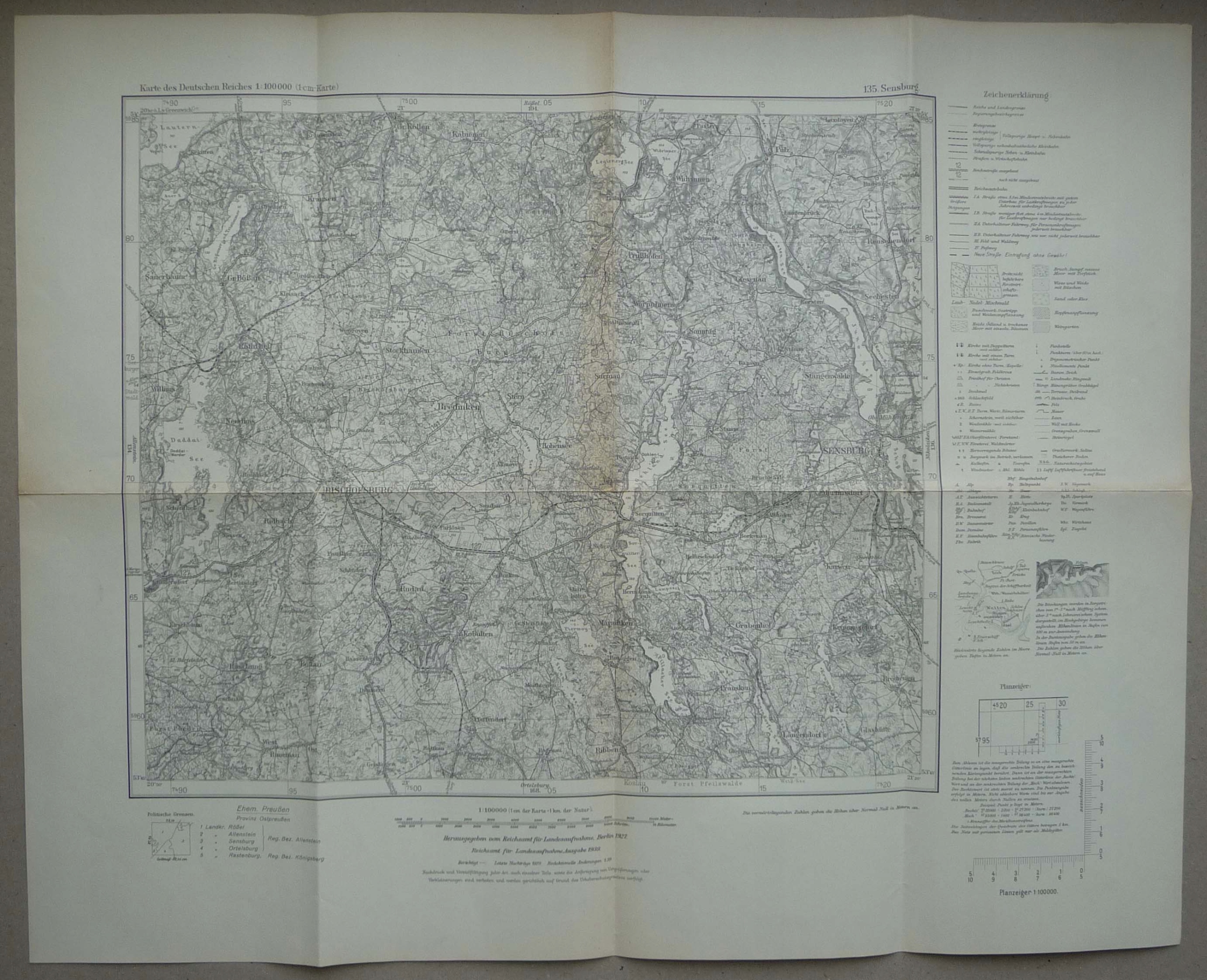 Очень подробная и точная карта в масштабе масштаба 1:100 000 из серии Karte des Deutschen Reiches (KDR), или Reichskarteизданной Департаментом картографии"Kgl. Preuß. Landesaufnahme".