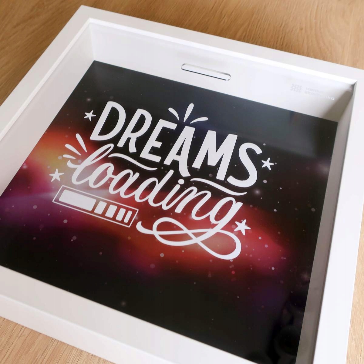 Рамка-копилка «Загрузка мечты» — это продуманная конструкция для начинающих мечтателей. Помимо надписи, на плексигласе также напечатан индикатор выполнения, символизирующий путь к осуществлению вашей мечты. Звездный фон придает композиции глубину, подчеркивая неповторимость рамы.