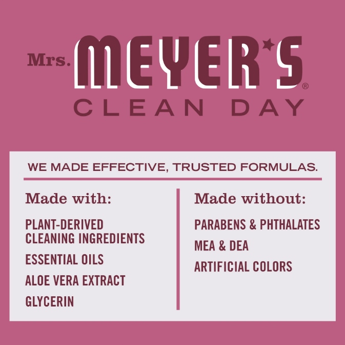 Продукция Mrs. Meyer's изготовлен с использованием не тестируемых на животных формул и имеет сертификат Leaping Bunn