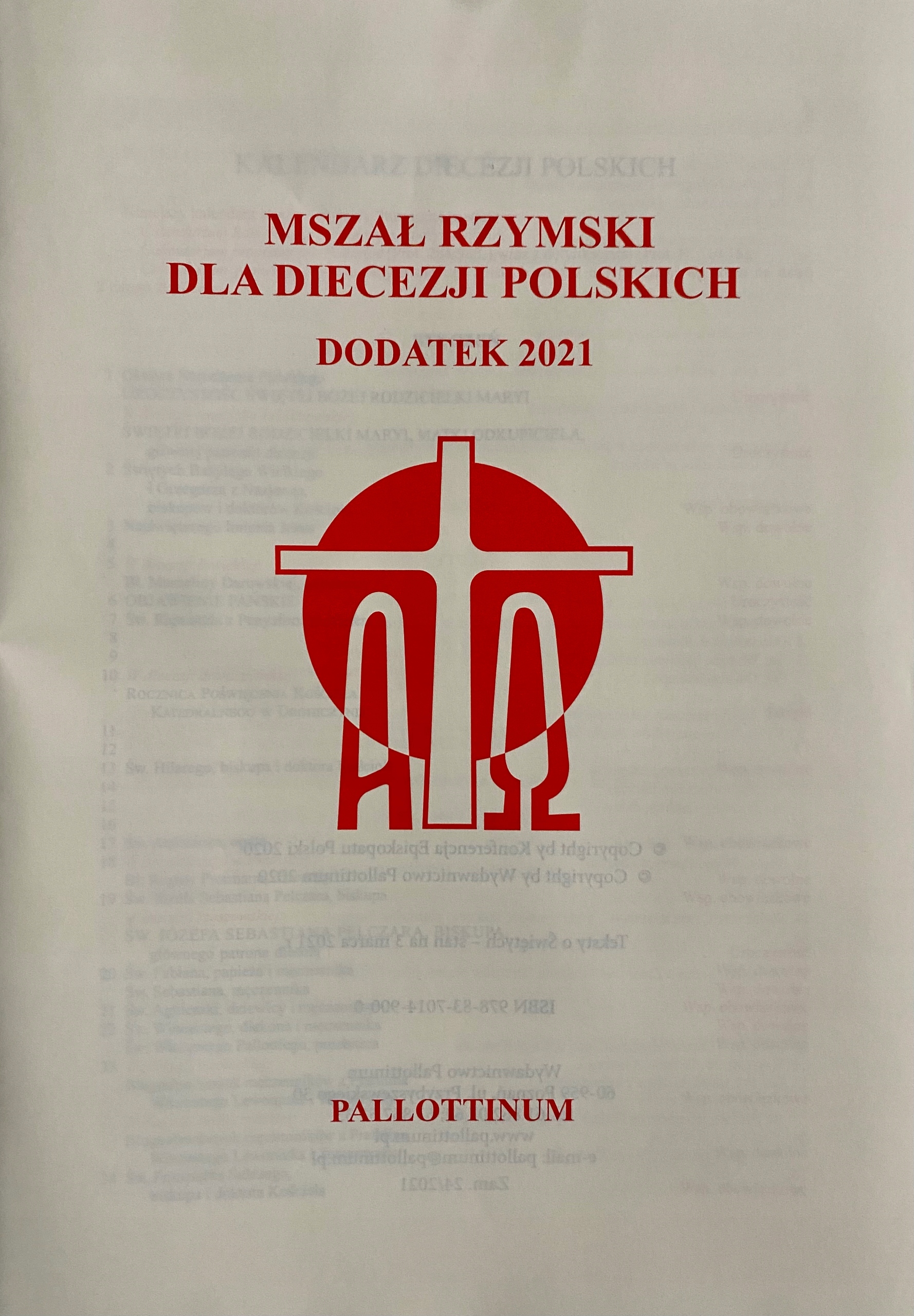 "Римский миссал для польских епархий". Последнее издание с формами Святой Мессы. о святых, утвержденных в 2009 году. Он также содержит новое ОБЩЕЕ ВВЕДЕНИЕ К РИМСКОЙ МАССАЛЕ и обновленный календарь.
