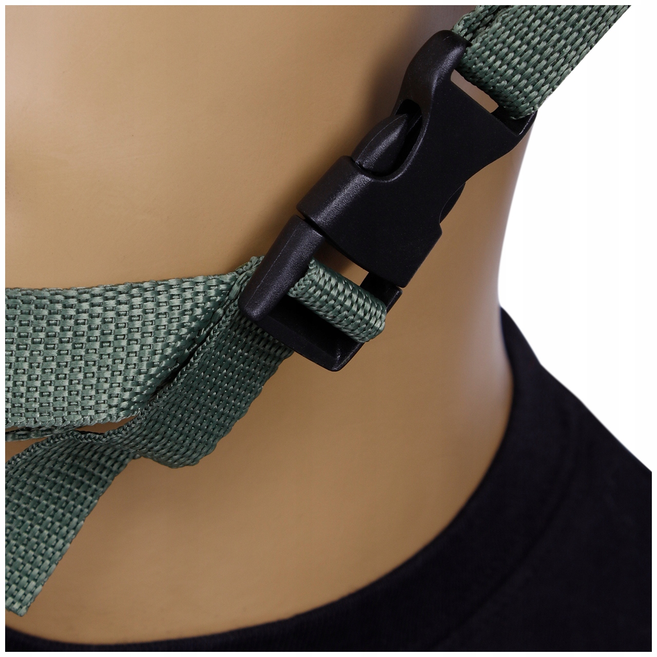 - Регулируемый по длине подбородочный ремень, застегивается на заклепки.