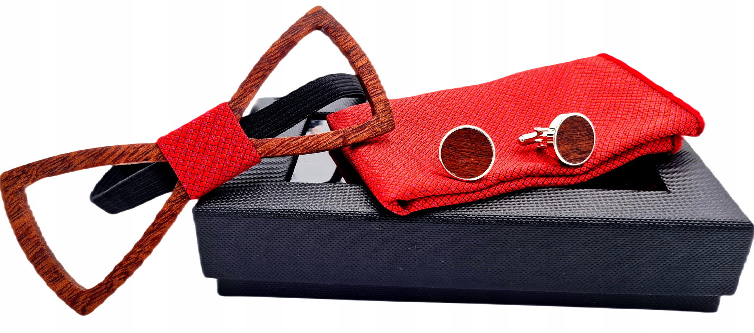 ⭐elegant Деревянная муха с съемкой и красным акцентом. Набор также включает в себя карманный квадрат того же цвета и запонки для деревянных стальных манжетов. Набор характеризуется высочайшим качеством и уникальным дизайном !! H2> качество материала и производительности обеспечивает идеальный и привлекательный вид! h2>