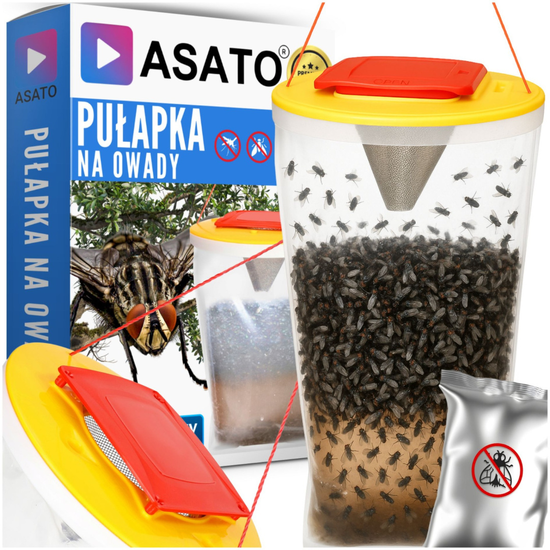 - 1x ловушка мух Asoo® (мешок с желтой крышкой и красной крышей)