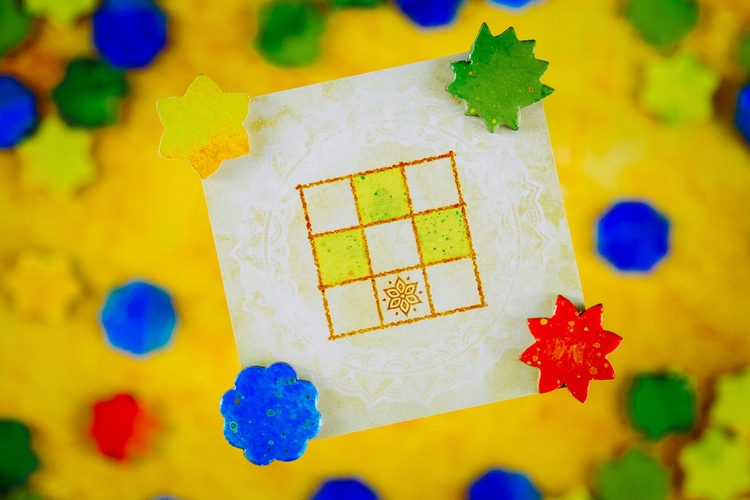 Логическая игра с трехмерной доской о бросании цветной пыли