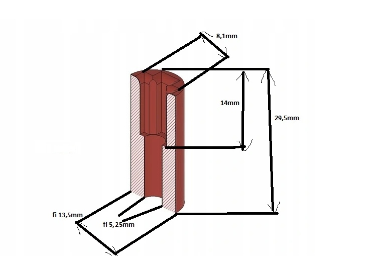 высота 29,5 мм, внешний диаметр 13,5 мм, отверстие вала 5,1 мм