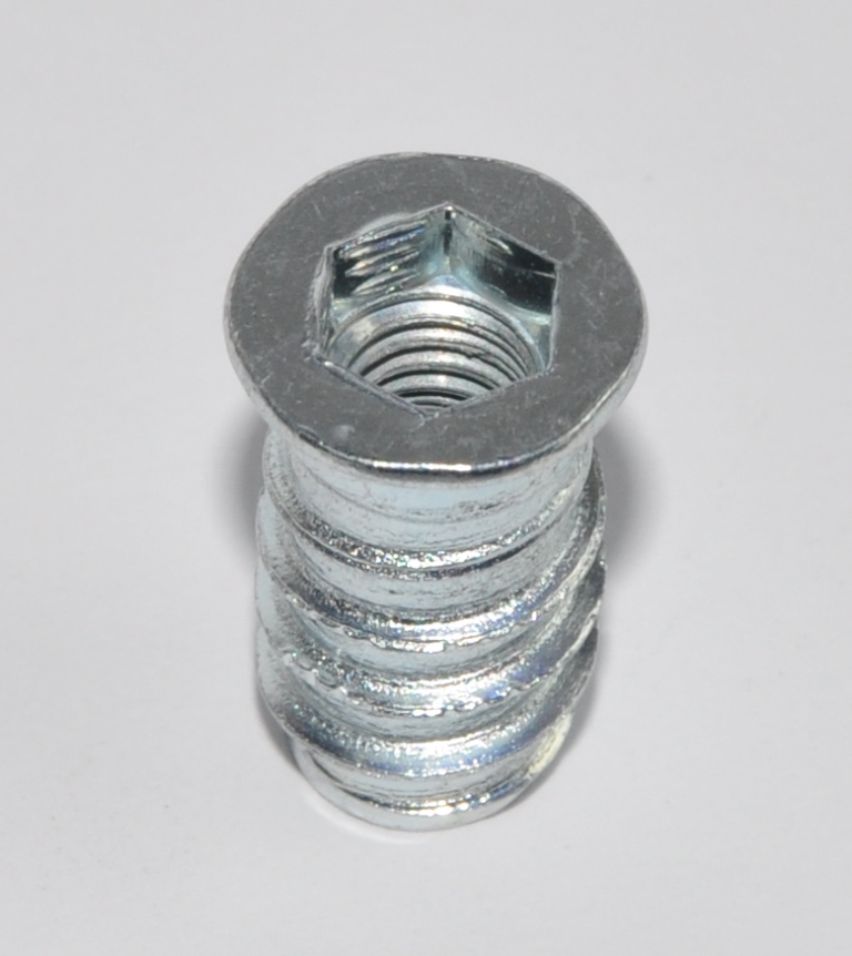 Описание: розетка изготовлена из металла, оцинкованного серебром. Соединитель имеет буртик с гнездом, адаптированным под шестигранный ключ № 6 (также известный как шестигранник 6). Розетка используется для создания резьбовых соединений. Позволяет создавать метрическую резьбу М6 в таких материалах, как дерево, пластик, ДСП, МДФ и других древесноподобных материалах. Используется для сборки домашней и садовой мебели и других конструкций, а также для установки регулируемых ножек. Этот тип соединителя гарантирует высокопрочное соединение и позволяет легко собирать и разбирать.