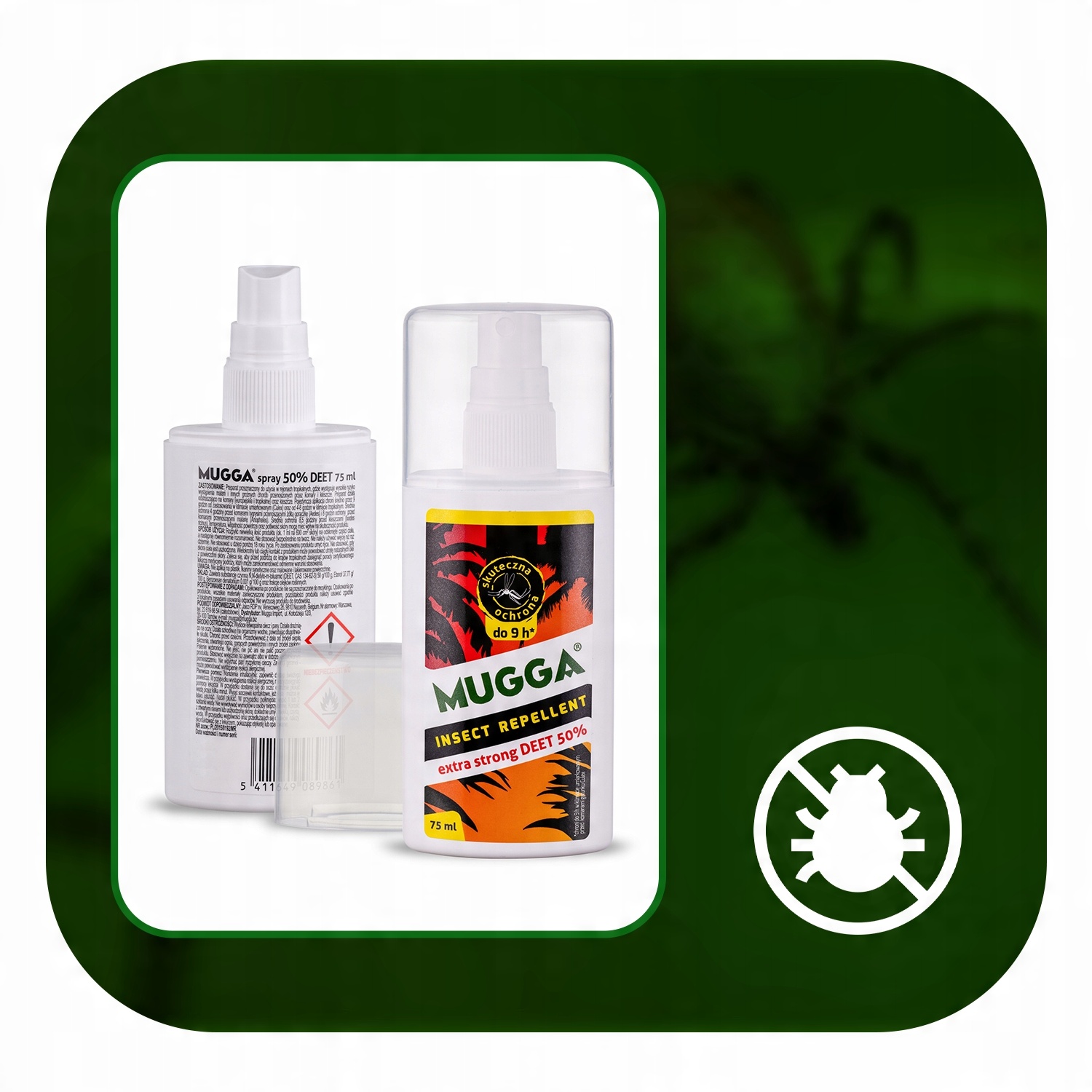 ▶ ️ спрей Mugga® не раздражает кожу , а не вызывает грязи , но ее не следует наносить на резку, раны и раздраженную кожу. В случае применения лица, сначала распылите руки , , а затем распространите подготовку к лицу.
