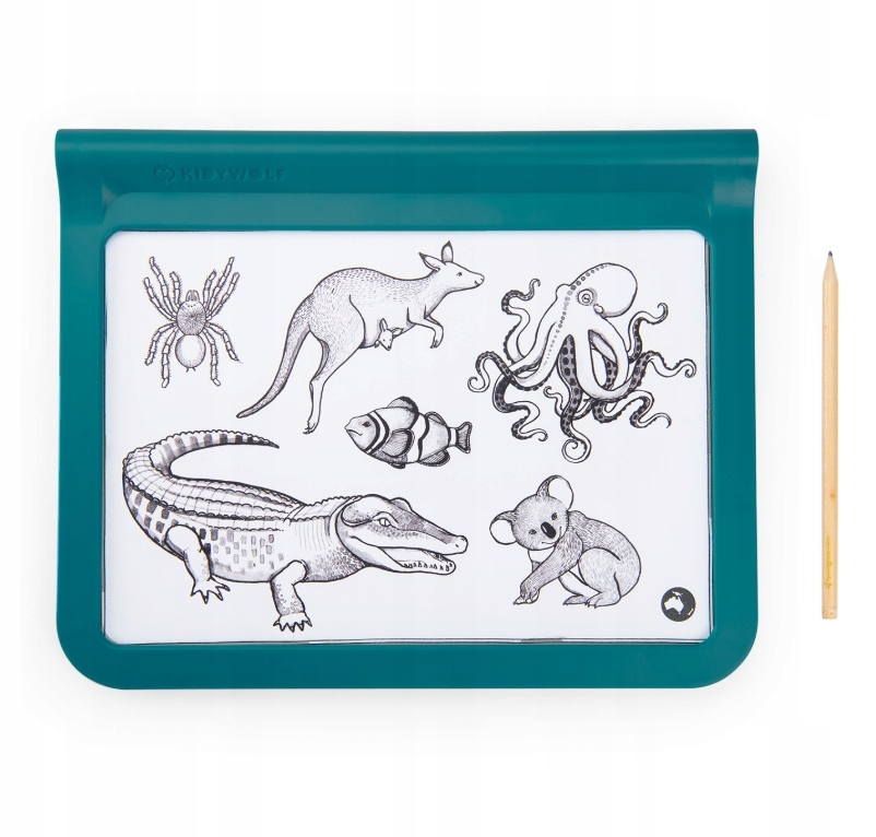 Планшет для рисования с подсветкой от Kidywolf и графикой от Moulin Rota. Различные животные на карточках с узорами необходимо выделить и нарисовать с помощью прилагаемого стилуса. На другой стороне планшета также расположена черная доска с неоновой подсветкой для рисования входящими в комплект маркерами.