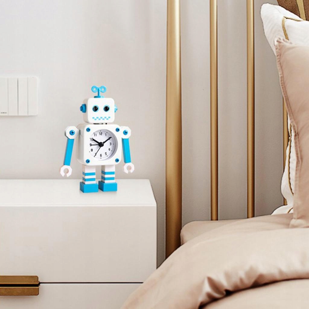 Робот мультфильма, тихая аналоговая тревога у кровати, белый