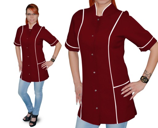 Рукав фартука достигает локтей, а целое - половина бедра. Подходит как для работы в магазине, так и для здравоохранения, даже в аптеке или клинике.