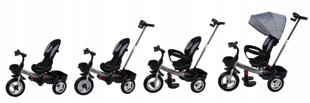 - adjustable guide height (3 positions) Open cost for shopping/toys at the back of the bike