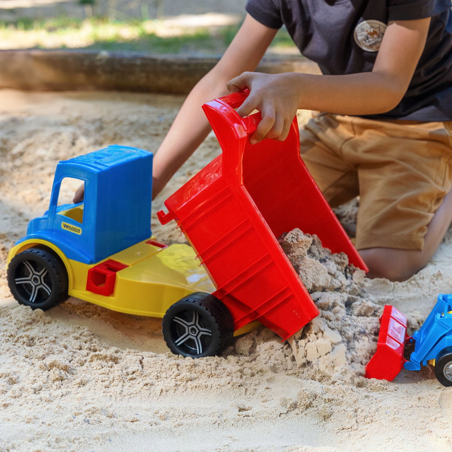 Самосвал серии Multi Truck с багги-бульдозером идеально подходит в качестве базовой техники для любителей строительства и автомобилестроения. Оба автомобиля характеризуются реалистичным воспроизведением, надежным качеством изготовления, легкой и прочной конструкцией и простотой управления. Самосвал имеет поднятый и опущенный грузовой кузов, на котором мы можем перевозить строительные материалы. На грузовом ящике имеется удобная ручка, а в передней части грузовика имеется крюк для крепления веревки или тягового троса, что облегчит транспортировку самосвала в любое место. Бульдозер, входящий в набор, имеет подвижные элементы, которые делают игру более интересной, например, погрузочный ковш и подъемную кабину.