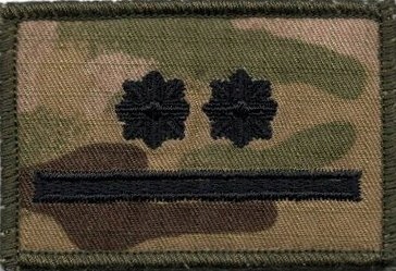 Нашивка со служебным званием для сотрудников полиции, вышитая черной нитью на ткани Мультикам US 22, края прошиты оливковой нитью на оверлоке Merrow . Знак отличия пришивается на острую часть липучек – крючков. Размеры - 60 х 40 мм.