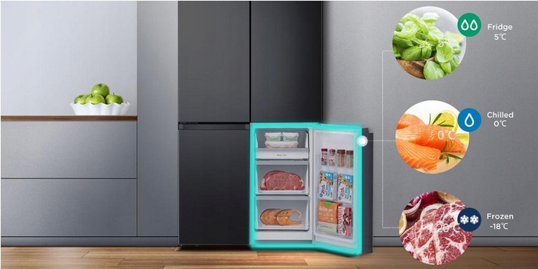 Благодаря интеллектуальной системе мульти воздуха холодный воздух распределяется по всей внутренней части холодильника. Это помогает держать пищу в отличном состоянии независимо от того, где они размещены.