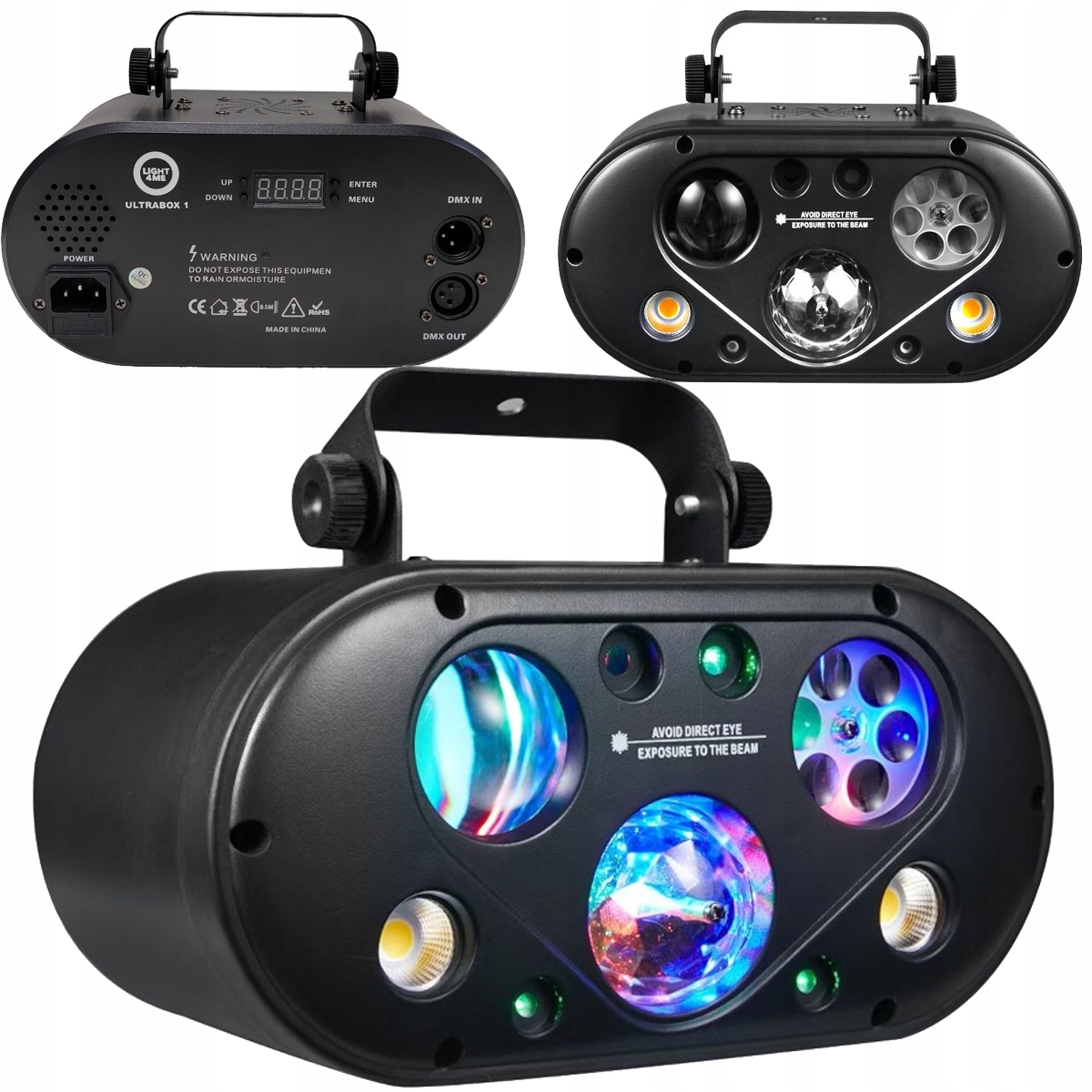 MULTIEFEKT ŚWIETLNY LED RGBA 6w1 OŚWIETLENIE DISCO STROBOSKOP LASER + PILOT
