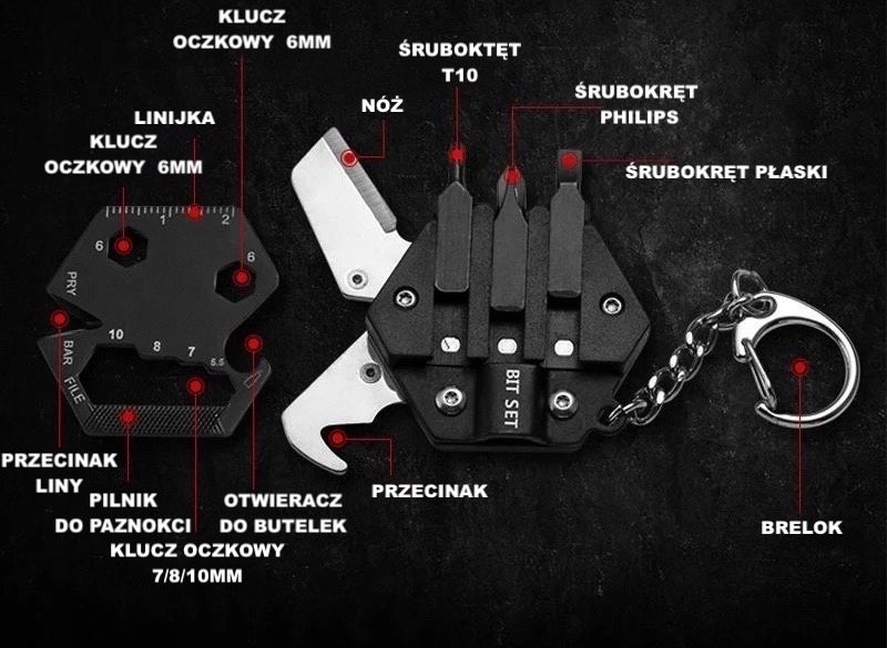- 14 инструментов в одном брелке!