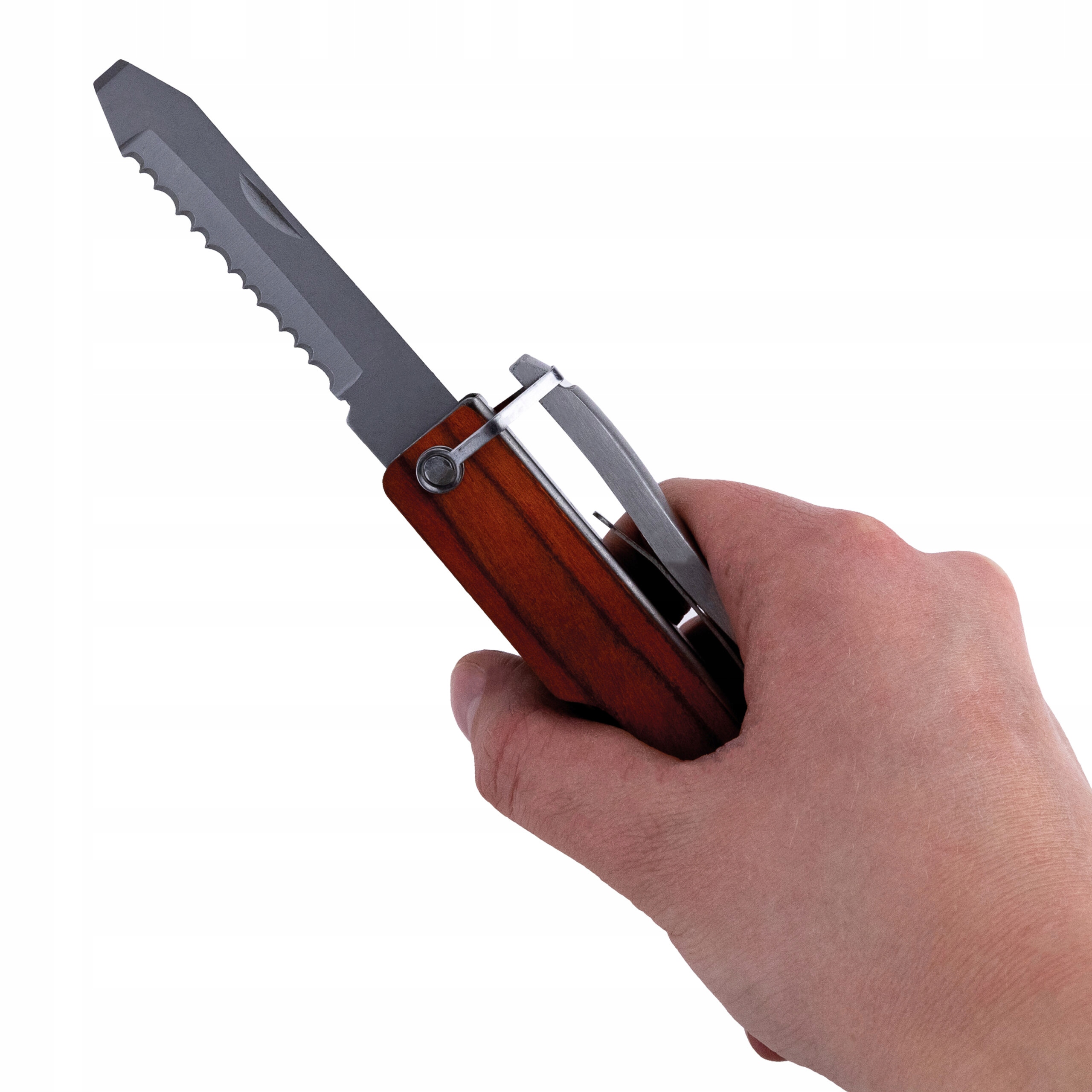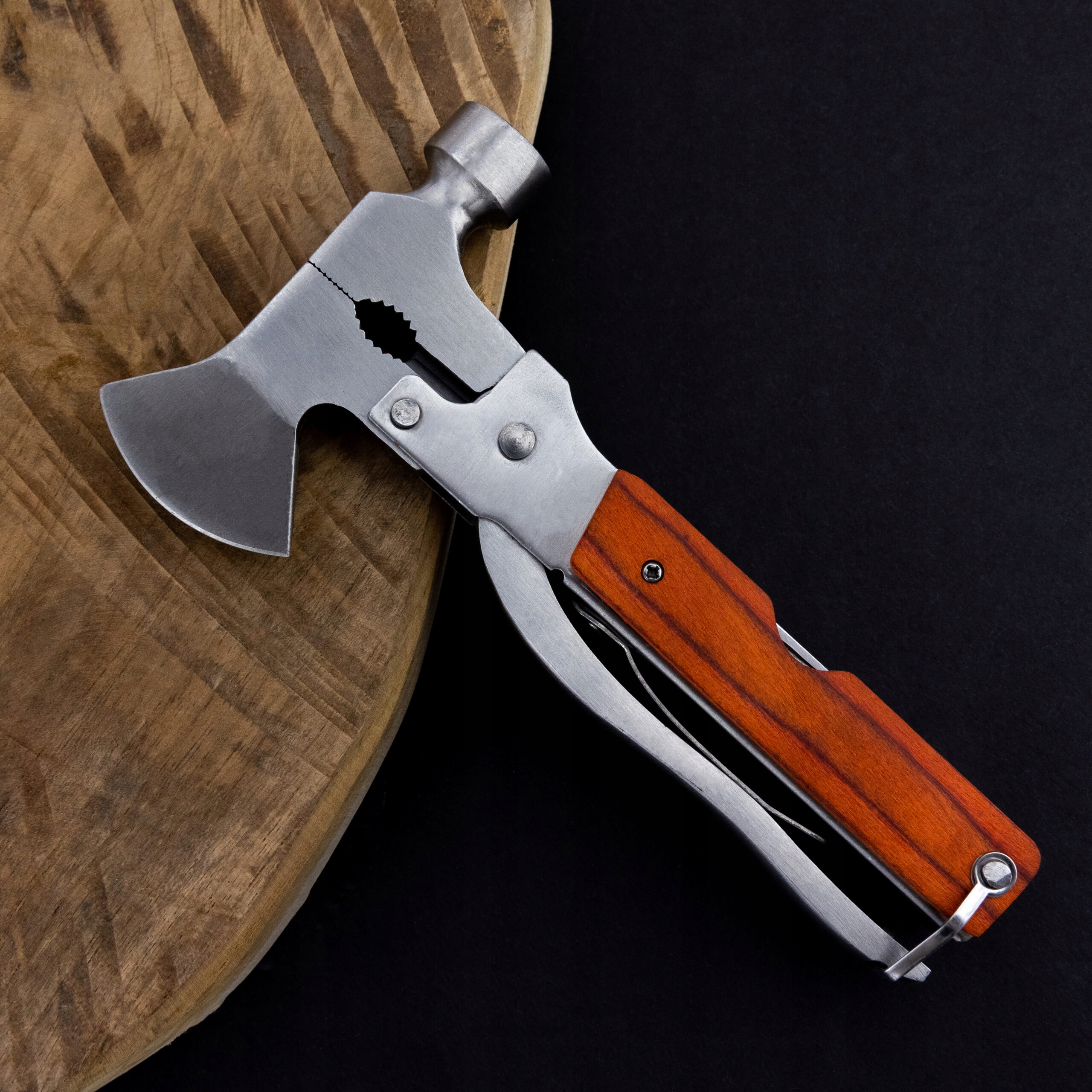 В комплект входит молоток с металлической головкой, которым можно забивать булавки. и крышки. Кроме того, в него входят пила, кусачки для веревок, нож, открывалка для бутылок, а также скребок и напильник. Каждая из этих функций может быть чрезвычайно полезна во время путешествия, альпинизма или работы в поле.