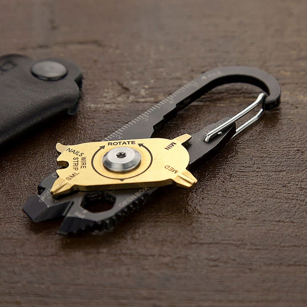 Это запатентованный карабин, который можно просто прикрепить к брелку или сумке. FIXR® умело скрывает 20 необходимых инструментов в футляре из натуральной кожи. Изготовлен из нержавеющей стали с черным титановым покрытием, оснащен вращающимся диском с золотым титановым покрытием. Идеальный и безопасный спутник для ежедневных путешествий. FIXR® предоставляет замечательный набор необходимых инструментов, включая отвертки и гаечные ключи, монтировку, напильник, открывалку для бутылок и даже скрытый нож и инструмент для зачистки проводов — вам будет сложно найти проблему, которую этот инструмент может решить. исправлю. В комплект входят 2 крестовых отвертки Phillips, 3 отвертки с плоской головкой, 4 гаечных ключа, шестигранный привод 1/4 дюйма, ключ для велосипедных спиц, монтировка, напильник, средство для чистки ногтей, открывалка для бутылок, открывалка для коробок и безопасный для полета нож. У него есть зажим, поэтому вы можете прикрепить его к себе или держать под рукой во время работы.