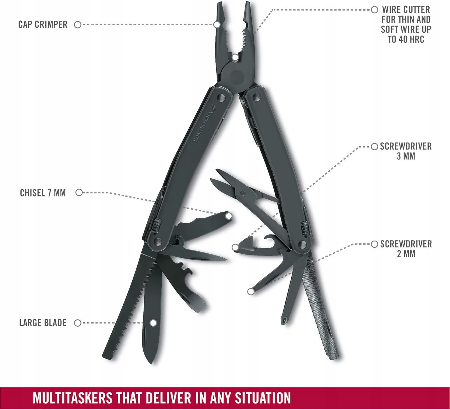 Многофункциональные инструменты поистине необыкновенны – они удобны, чрезвычайно функциональны и в то же время компактны. Мультитул Victorinox Swiss Tool Spirit X 3.0224.L является доказательством того, что многофункциональные инструменты могут быть элегантными. Эта модель легкая, эргономичная и тонкая. Вы заметите это каждый раз, когда возьмете его в руки. И это удача, потому что вы будете им часто пользоваться: от перерезания проводов до открытия бутылок. Этот карманный нож подойдет в любой ситуации.