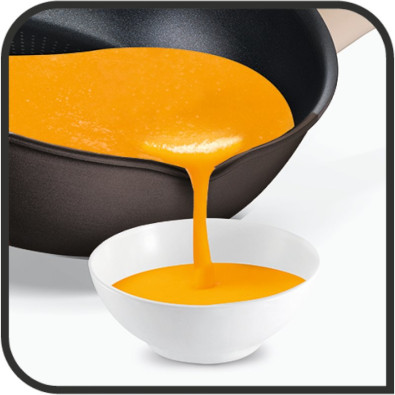 Сковорода очень быстро нагревается, а большая поверхность Подходящая толщина термосплавленного дна обеспечивает равномерное распределение тепла. Это гарантия идеально приготовленного блюда.