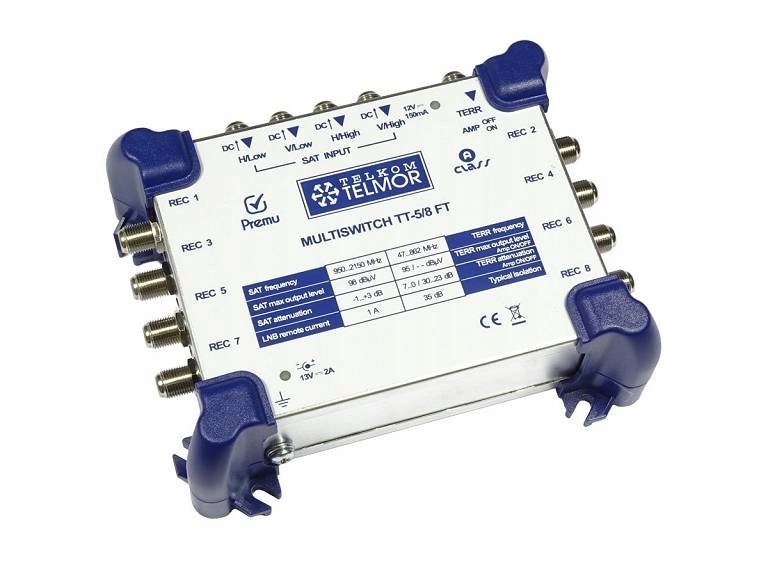 Мультисвичи PREMU TT-5/8 позволяют подавать сигнал на 8 спутниковых головок. Наряду с сигналом SAT распространяется и сигнал RTV.