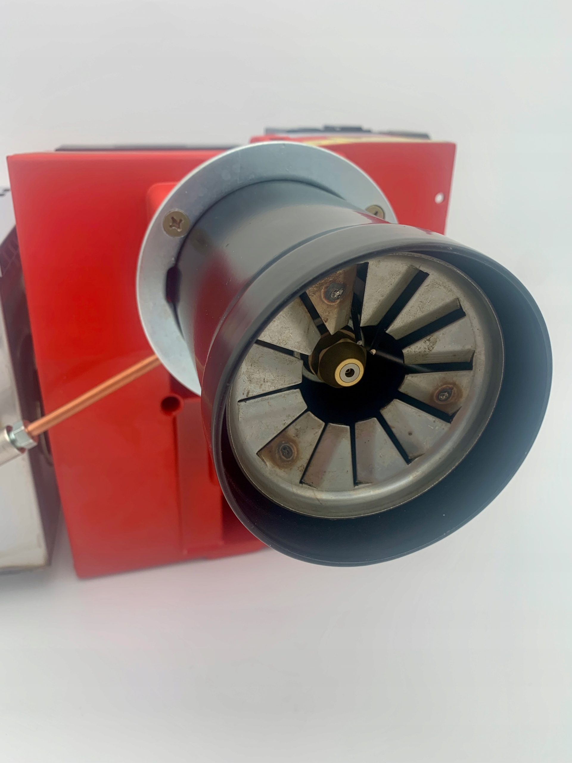 Мультимасляная горелка для печи. Горелка сжигает различные виды масла, напр. моторное масло, отработанное масло, растительное масло.