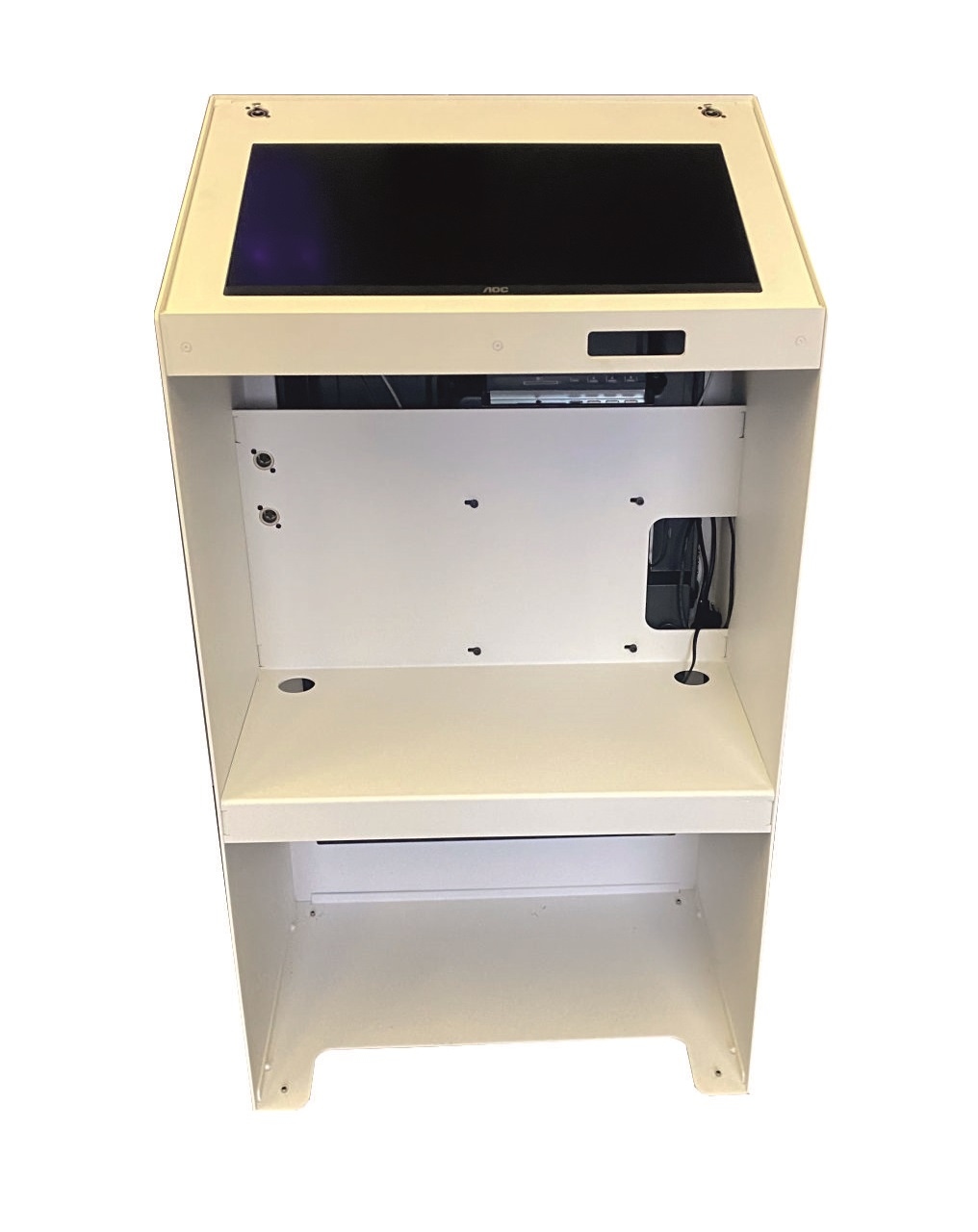 Верхний рабочий стол имеет встроенный 22-дюймовый экран, подключение видеосигнала HDMI или VGA,