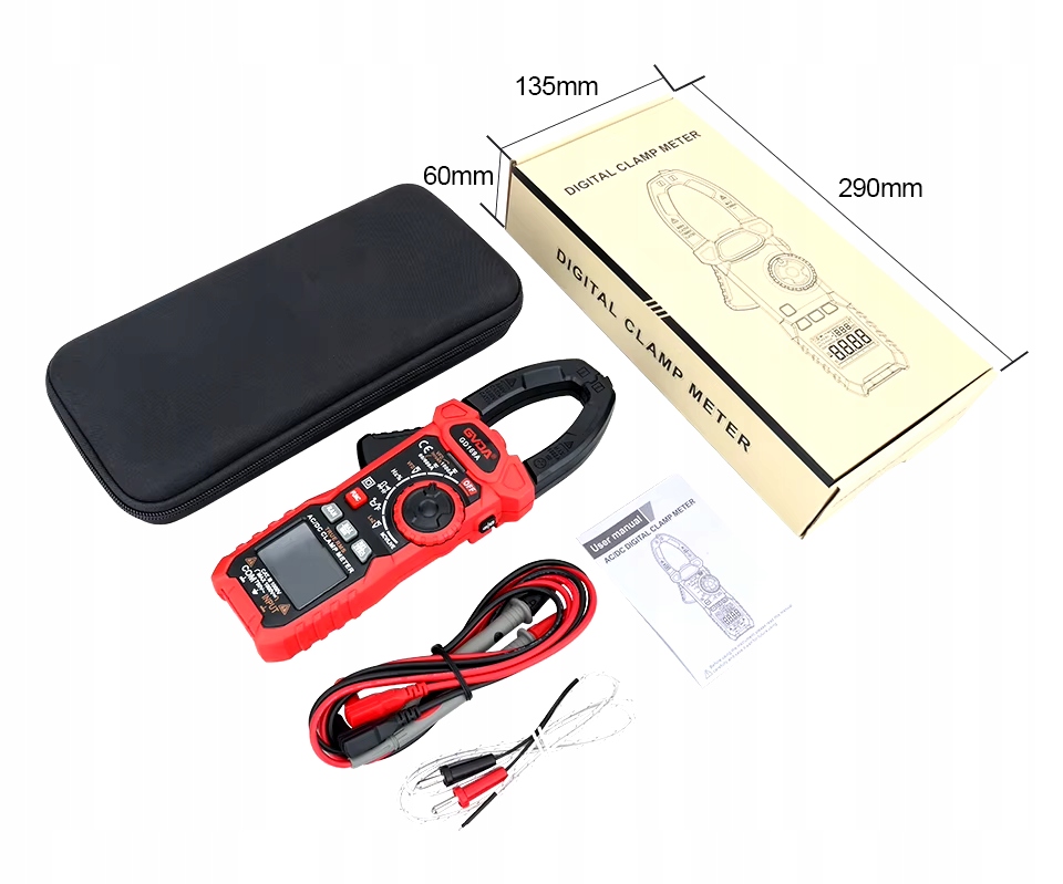 диод, емкость, температура, не -контактное обнаружение напряжения переменного тока (NCV и напряжение обнаружения. Ширина челюсти составляет 40 мм, которая достаточно широкая, чтобы измерить, не нарушая цепь. Датчик NCV посылает звуковую и визуальную тревогу после получения электромагнитного сигнала. Он имеет функцию удержания данных, фонарик, индекс заряда с низким уровнем батареи, градус по Цельсию/Фаренгейт, максимум. Разработано и в соответствии с стандартами IEC61010-1, CAT III 1 1000 В, безопасно и надежно. Автоматическое питание за 15 минут в отсутствие активности помогает сохранить батарею. Включает 2 измерения кабелей и термопару для использования в качестве мультиметра