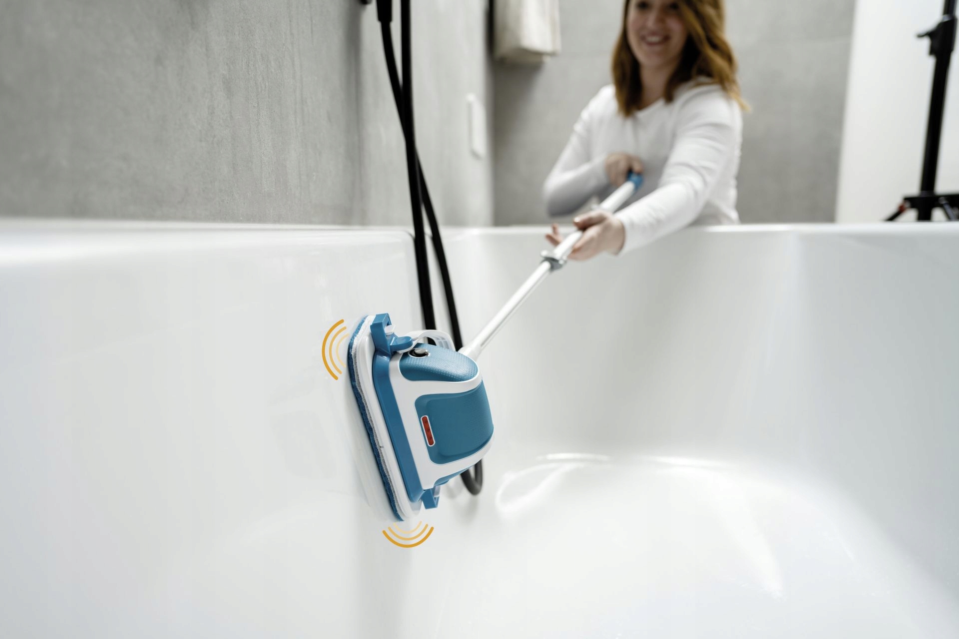 Функции Очищает, чистит и полирует автоматически с частотой 1500 вибраций в минуту. Система EasySwitch 2-в-1: можно использовать вручную или с помощью телескопической штанги. Работает от аккумулятора и чрезвычайно гибок - неограниченное использование благодаря аккумулятору. Универсальное использование: кухня, ванная комната. , туалет, прихожая, полы, бассейн, плитка и многое другое. Практичная телескопическая стойка: защищает спину и колени, можно удлинить до 105 см