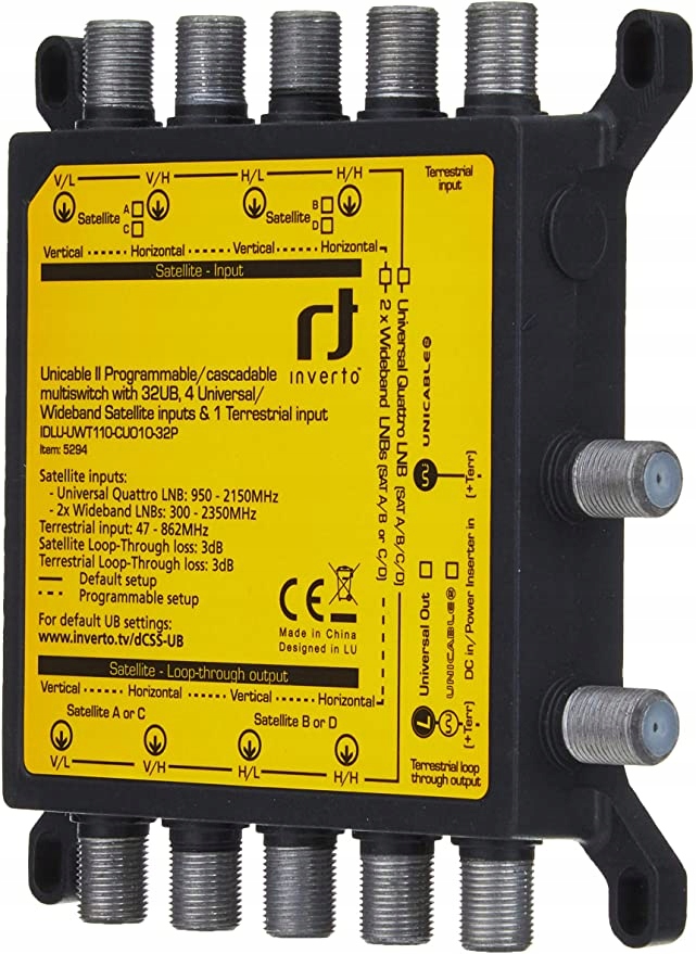 Просматривая «Мультисвіч Inverto IDLU-UWT110-CUO1O-32P», вы можете быть уверены, что данный товар из каталога «Multiswitche» будет доставлен из Польши и проверен на целостность. В цене товара, указанной на сайте, учтена доставка из Польши. Внимание!!! Товары для Евросоюза, согласно законодательству стран Евросоюза, могут отличаться упаковкой или наполнением.